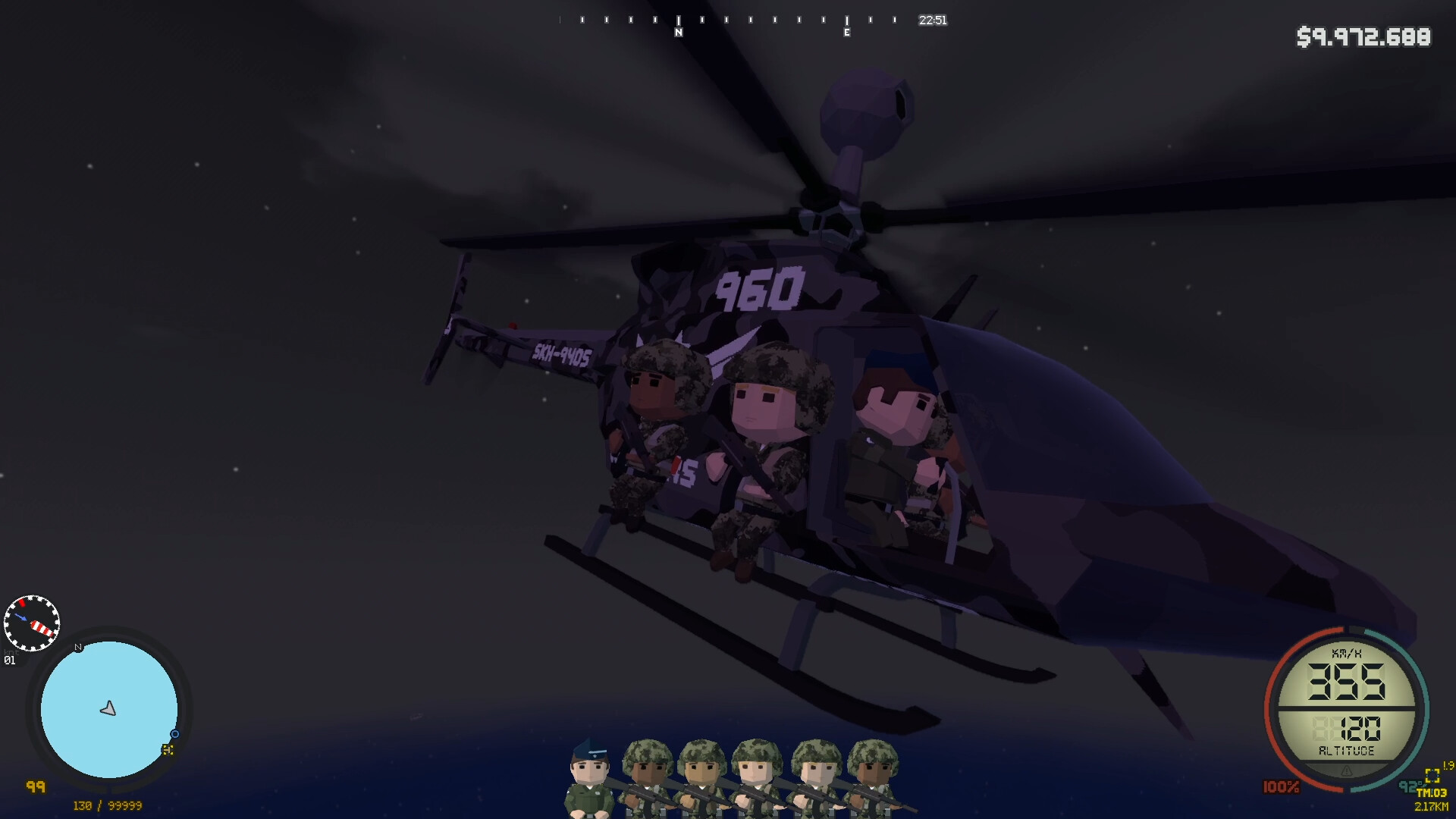 “The game is currently fully playable, with all its core mechanics, including a basic map, a limited variety of helicopters and missions, a basic character customization system, and endgame mechanics.”