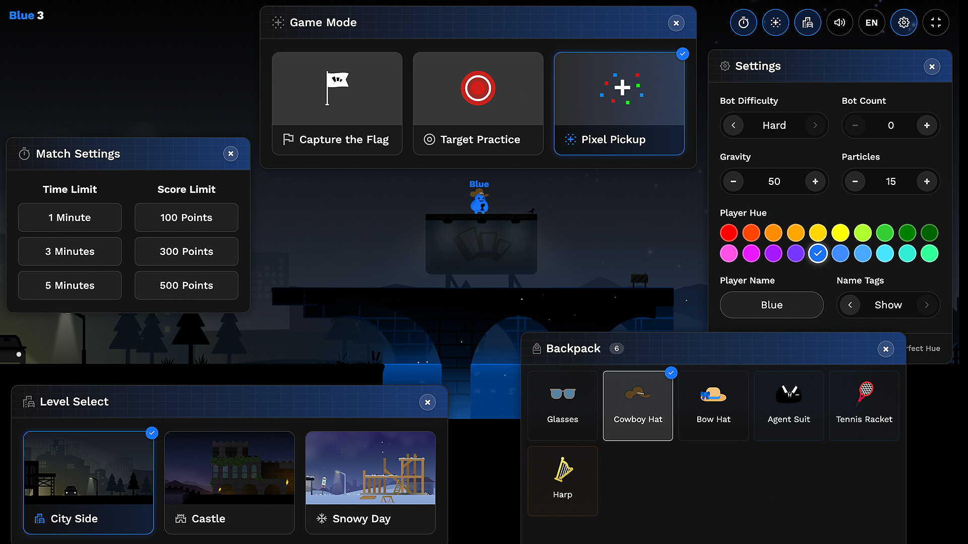 • Pixel Pickup - Smash your opponent into pixels and rush to collect them all.