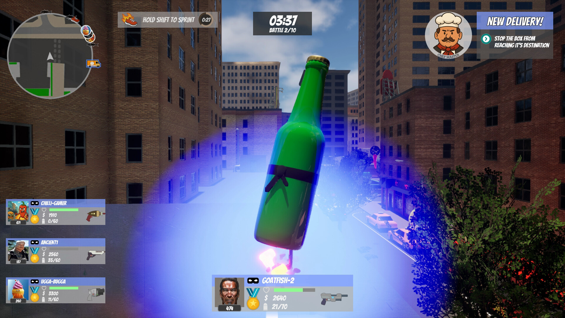 • Hear your characters’ salty, hilarious comments as they slice, squish, and blast their opponents