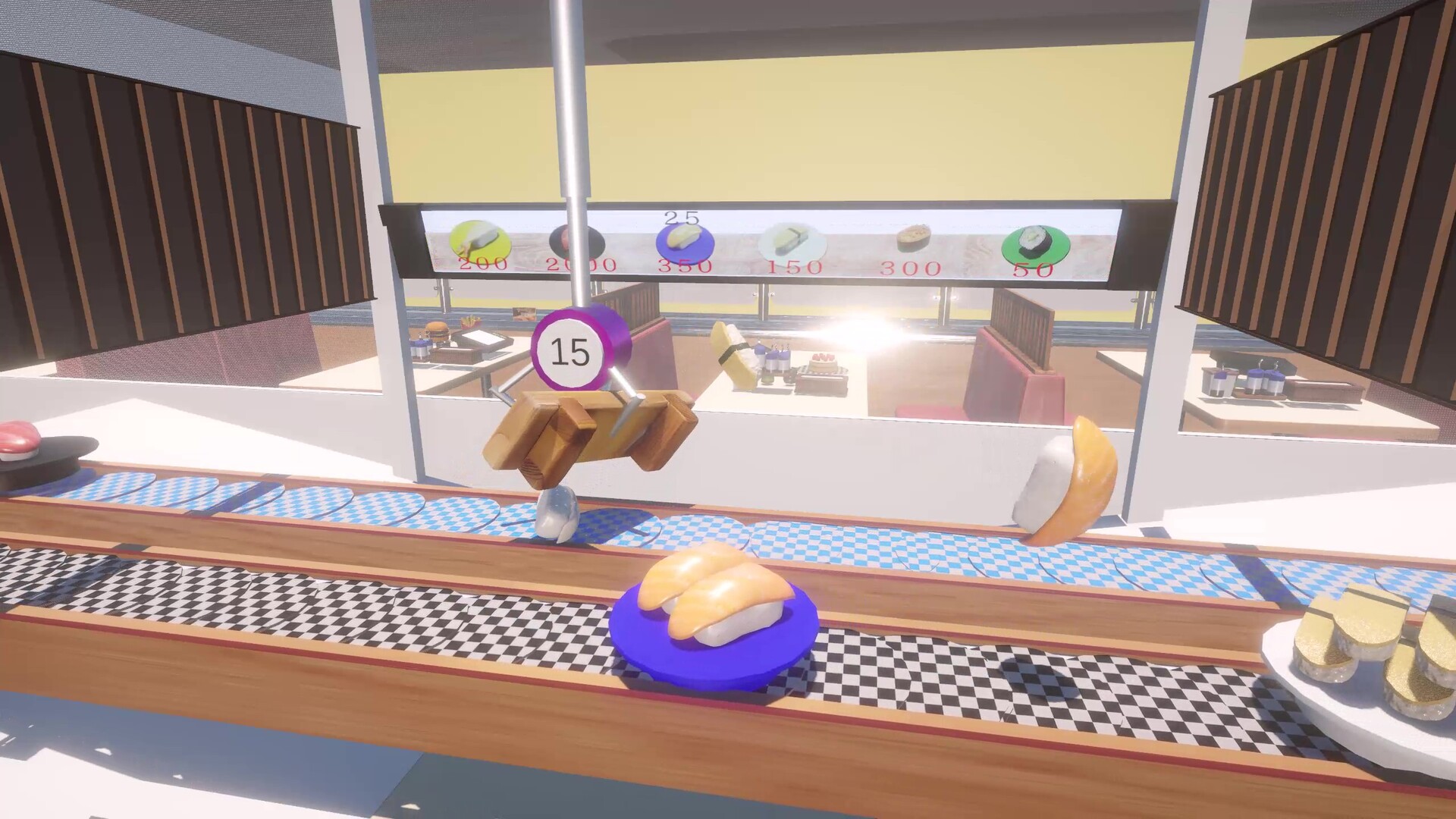 瞄準、抓取、全部噴飛! 操控基於物理運算的夾子,隨心所欲(或者身不由己)地把壽司吹飛並獲得它們吧!體驗物理運算帶來的不可預測性,用你「精湛」的技巧甩飛心儀的料理來獲取高分。