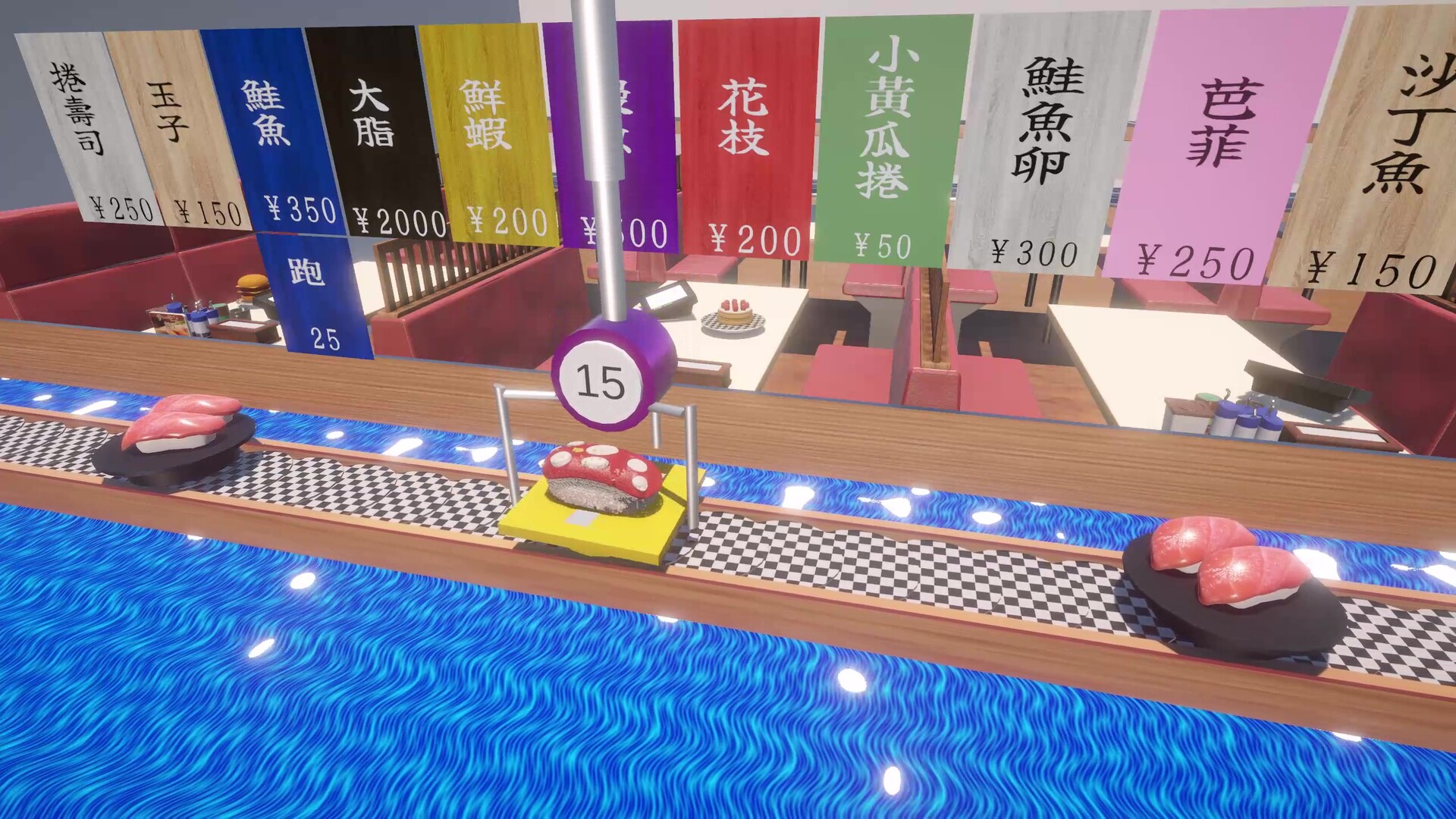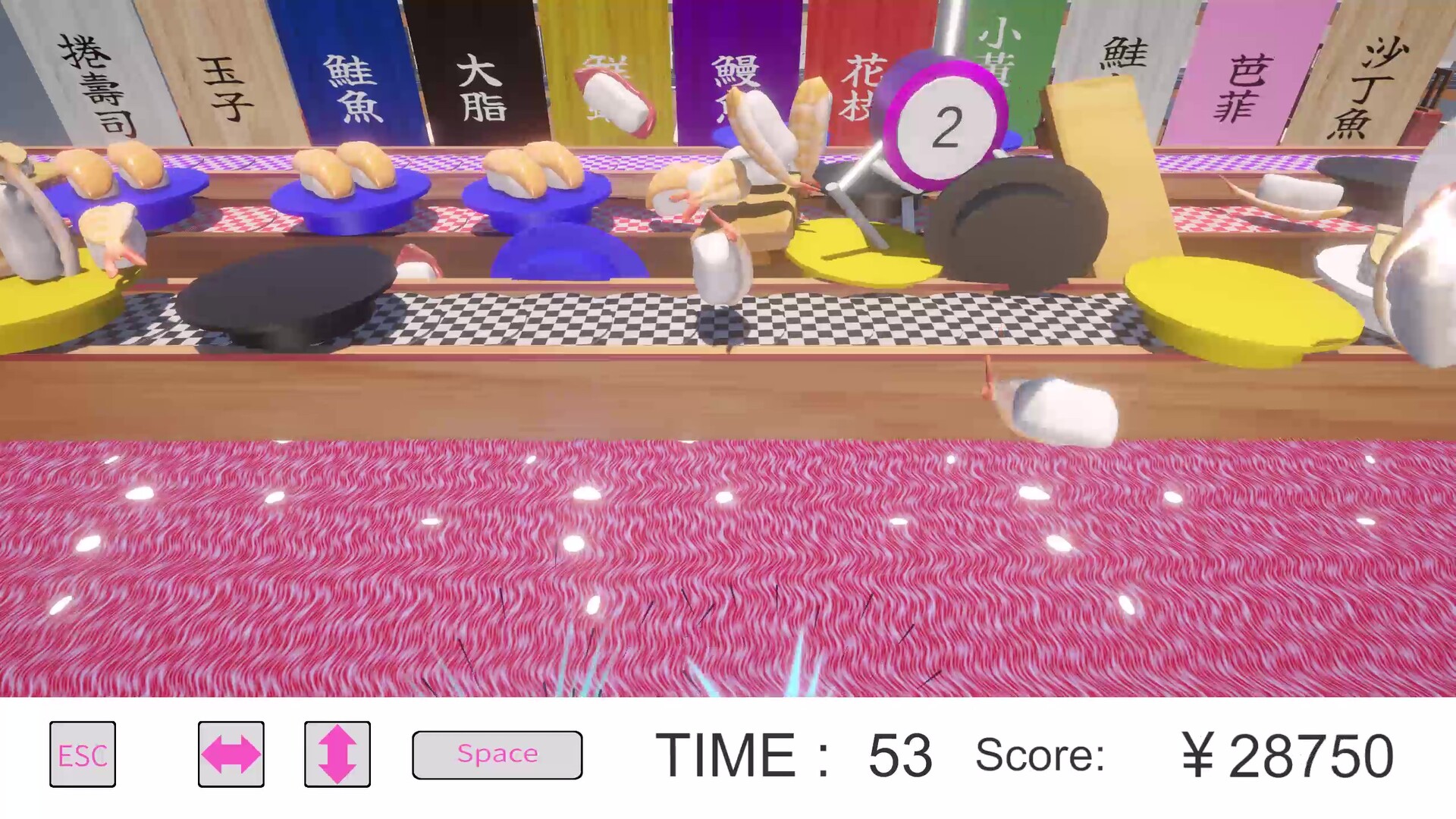瞄準、抓取、全部噴飛! 操控基於物理運算的夾子,隨心所欲(或者身不由己)地把壽司吹飛並獲得它們吧!體驗物理運算帶來的不可預測性,用你「精湛」的技巧甩飛心儀的料理來獲取高分。