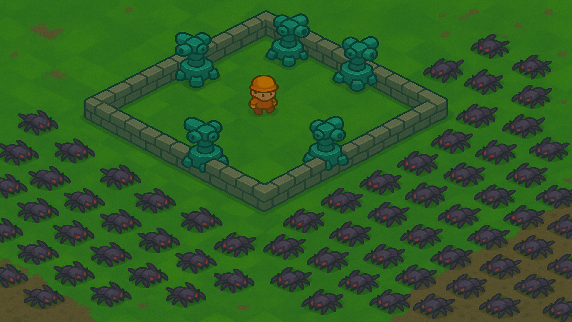 Build fortress walls, specialize towers, and draft powerful blueprints to hold the line against hordes of enemies. Play solo or with up to 4 players in fast-paced roguelite runs where your build choices, base layout, and teamwork determine whether the swarm breaks through — or you do.