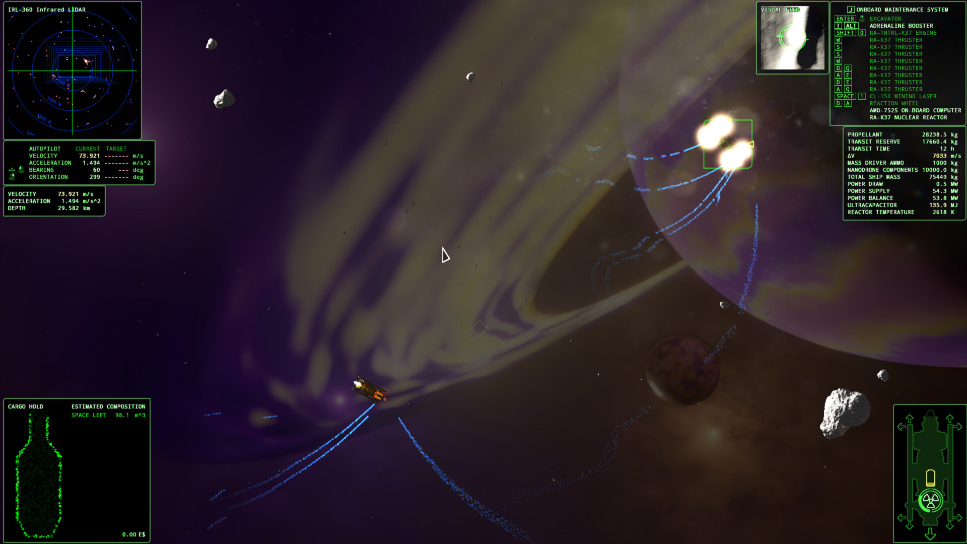 • Nothing spins forever. Ships, asteroids and ore eventually come to rest instead of tumbling endlessly.
