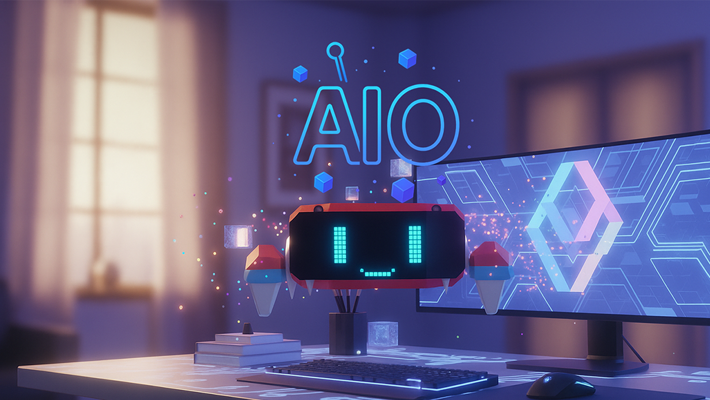 A cute desktop pet named AIO sits quietly at the edge of your screen.