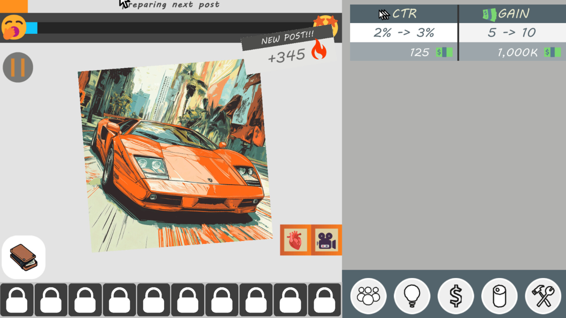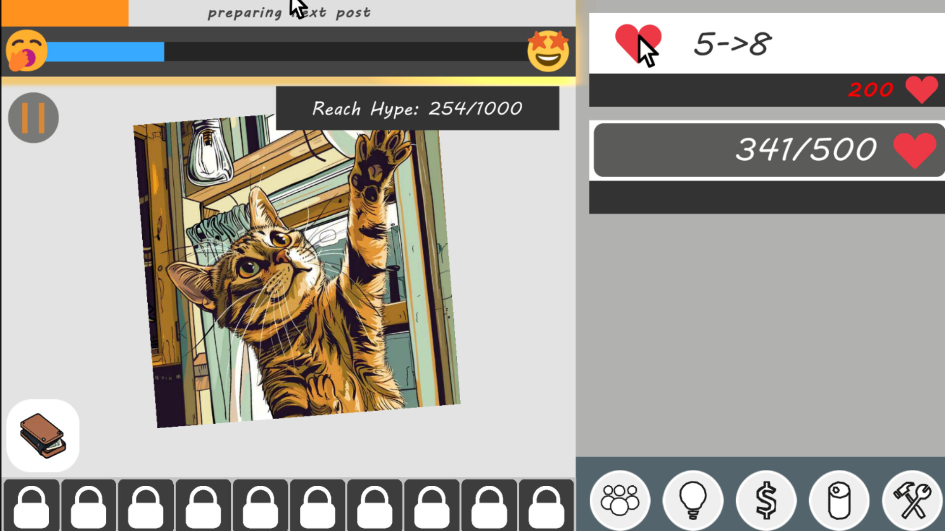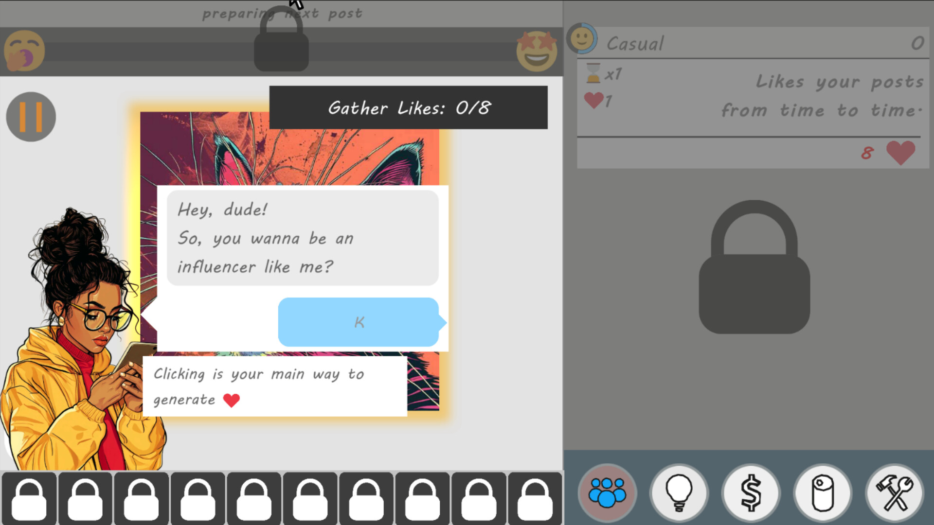 Why settle for slow and steady when you can dominate the game with powerful upgrades? Unlock and buy upgrades to supercharge your clicks, posting skills and follower power.