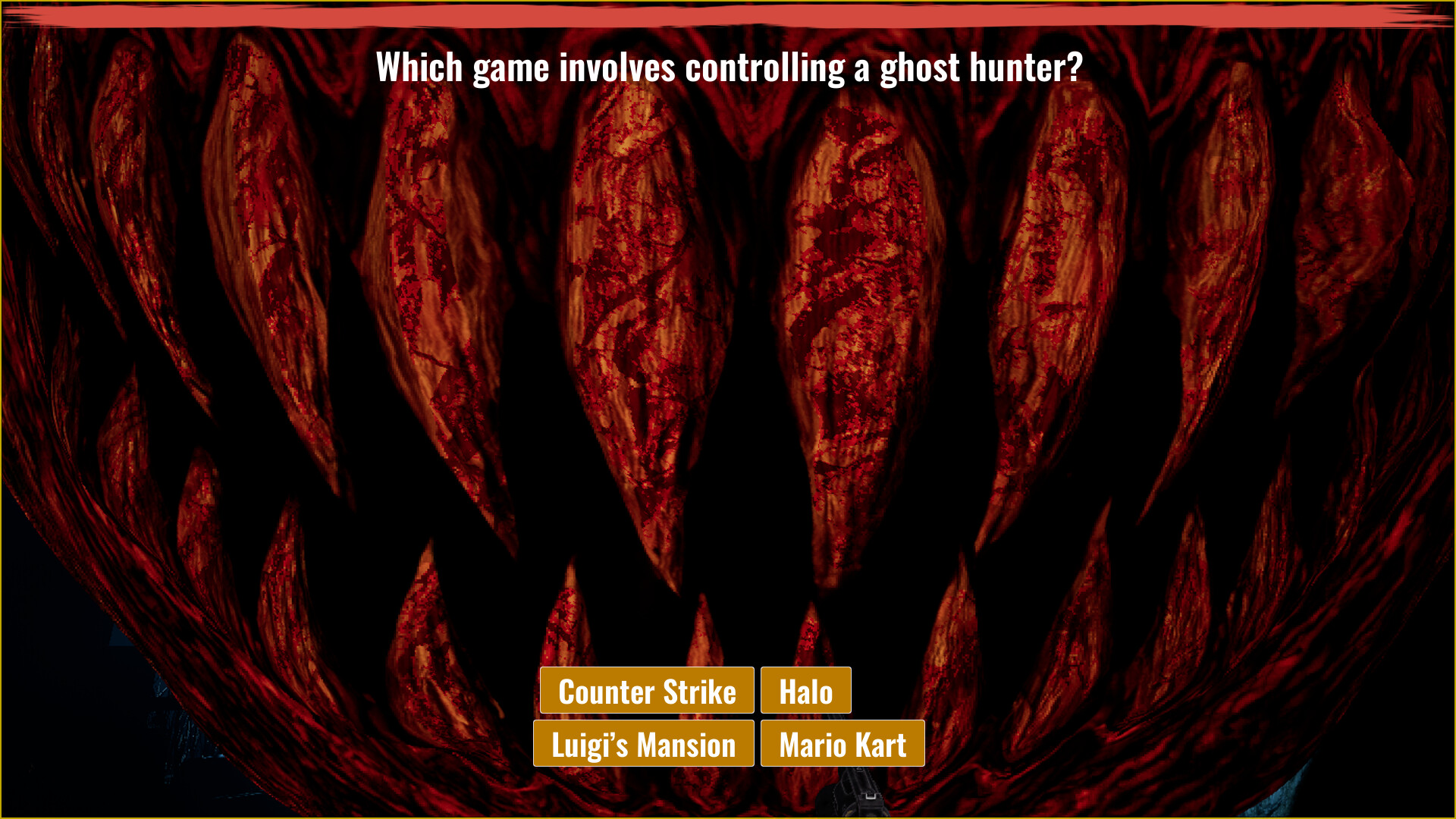 Welcome to a high-stakes quiz where your life is on the line. Answer correctly and you will keep Mr. Smiley at bay and live. Answer incorrectly and he may eat you whole. Your knowledge will be tested across several categories, and you will get a choice as to which topic you want to go with. Examples include Anime, Maths, Gaming, History and General Knowledge. Which one will you stake your life on?
