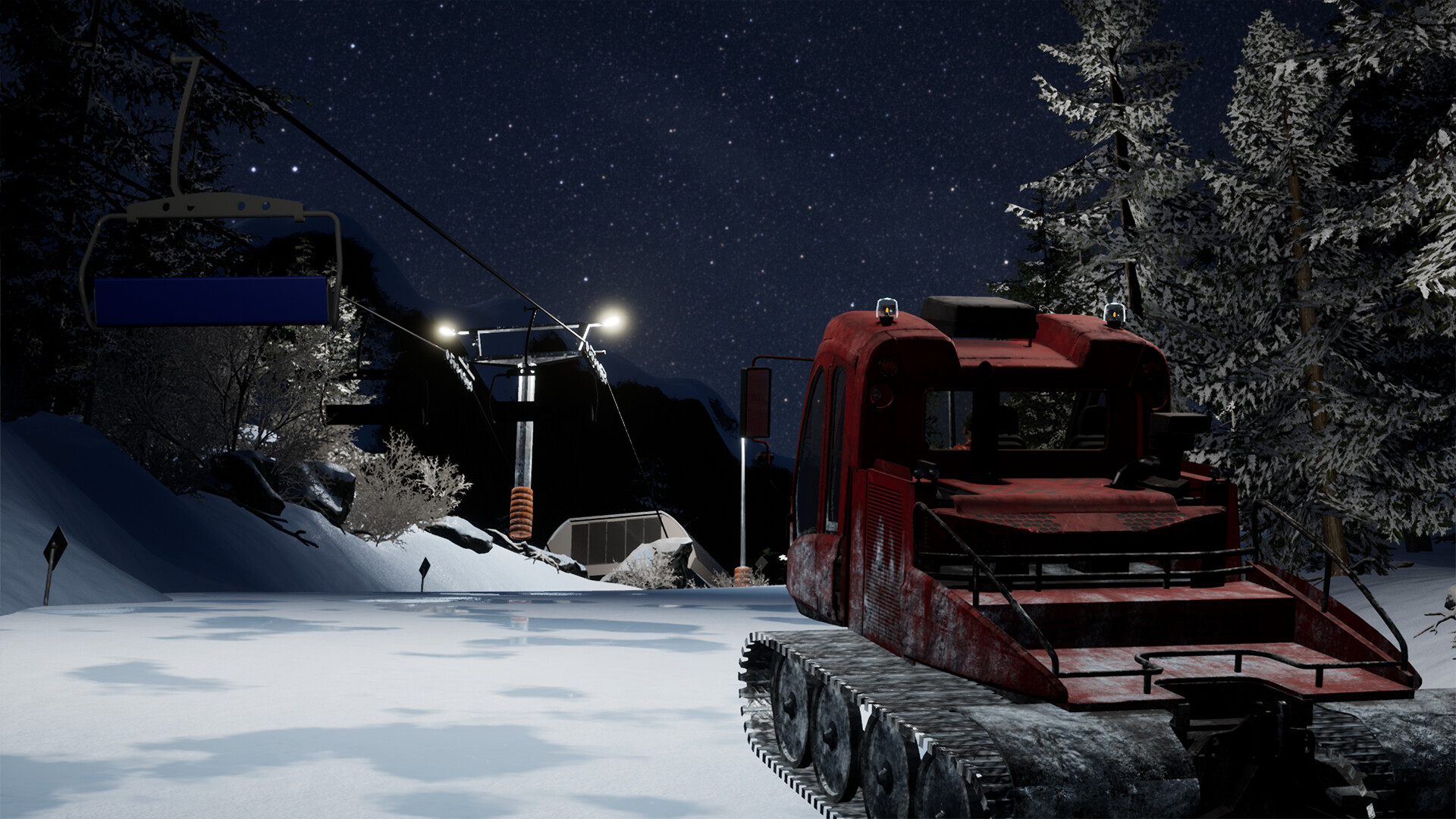 "This time, you'll relax while driving one of the most modern snow groomers! Working at night pays off more, and the slopes must be ready for skiers in the morning.