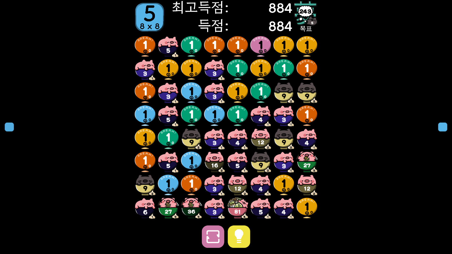 • 색갈의 균형 때문에 블록의 짙은 색에서 밝은 색을 대체하면 핑크 돼지가 검은 돼지로 바뀝니다