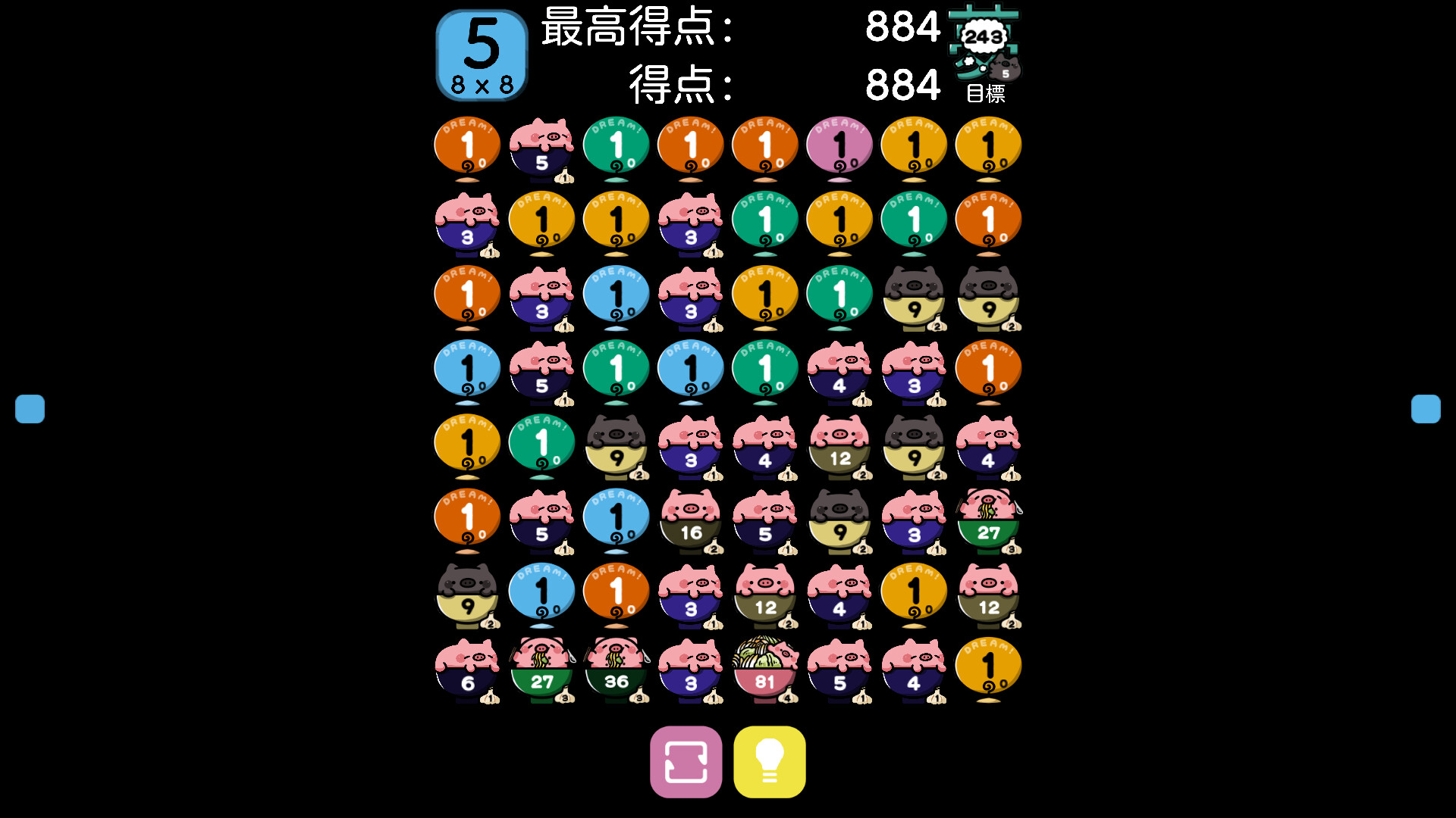 • 濃淡のバランスのため、ブロックの濃い色から明るい色に代わるとピンク豚が黒豚に変化する