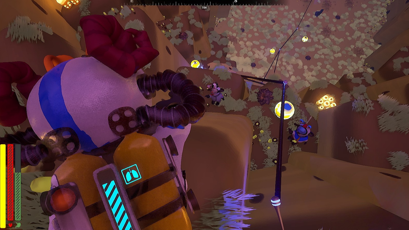 Luckily, you didn't come empty-handed. Use the jetpack for short distances, remove obstacles with the Gravity Gun, make quick escapes with the Teleporter. But most importantly: always monitor your 'Nitrogen' tank. The air you breathe isn’t oxygen, and if it runs out...