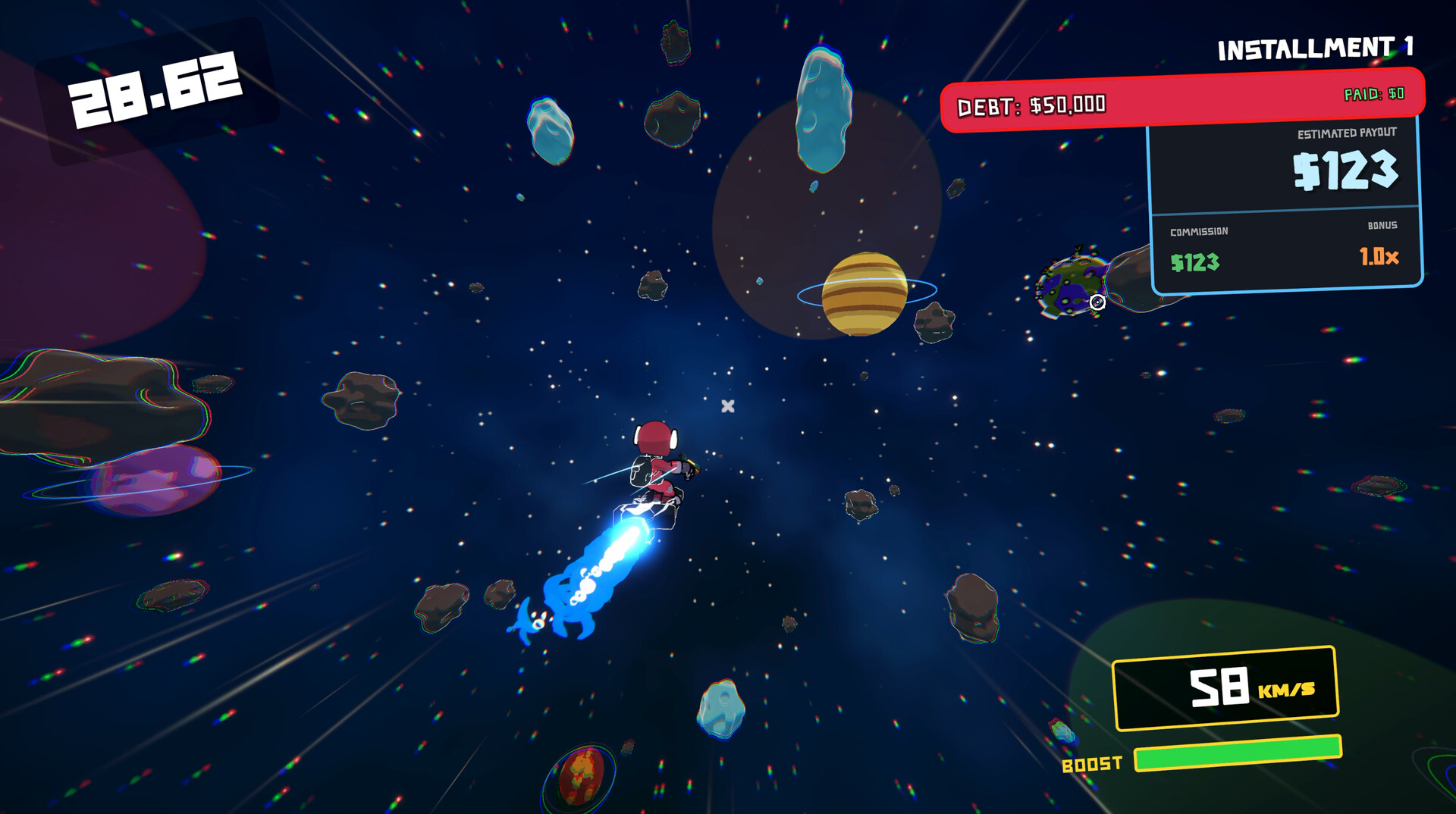 Smuggle your way to freedom in this fast-paced space delivery action roguelite where you are in debt to the mob. Blast through asteroids for speed, weave through chaos, and deliver packages to survive. Don't let the debt consume you.