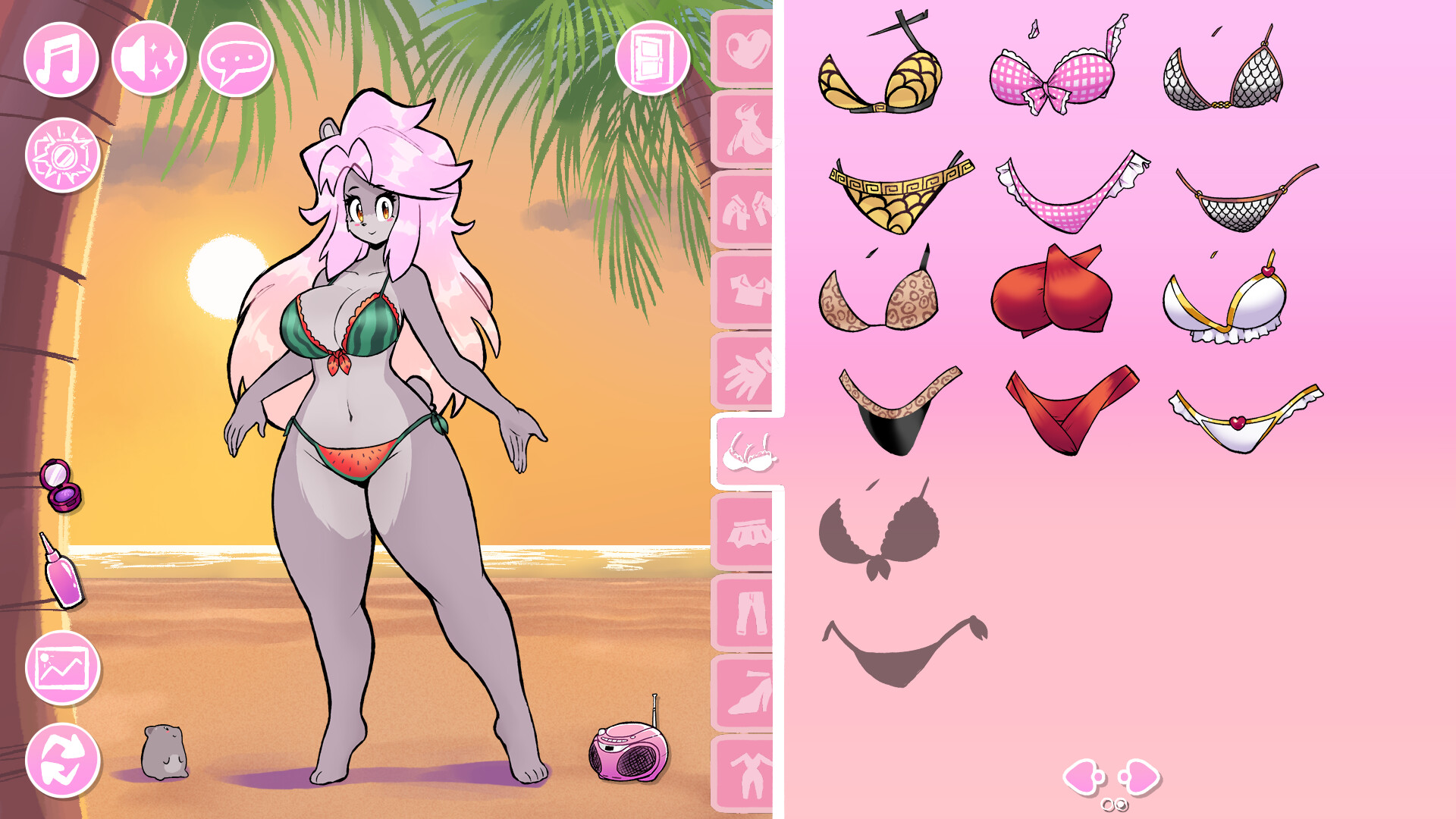 The Bikini Variety Pack adds a new page to the underwear/swimsuits tab, giving you 7 additional bikinis for Helene to wear and mix with other items.