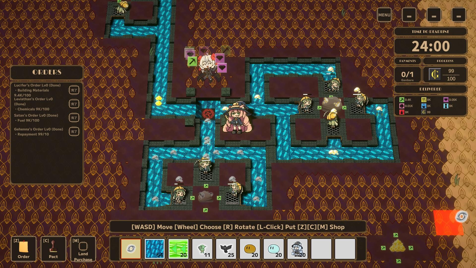 Connect the water current conveyor belts, give orders to cute familiars, and create products.