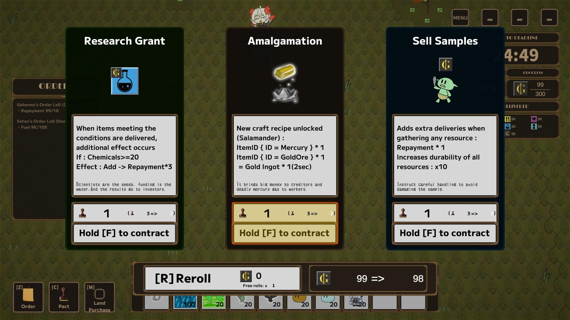Factory builder and Rogue-lite are combined to new game. Summon familiars as worker and develop the production line on retro European style fantasy world. Stack synergy for mass production and repay the debt to win. In the hell ruled by capitalism, enjoy the amusing jokes exchanged by cute girls.