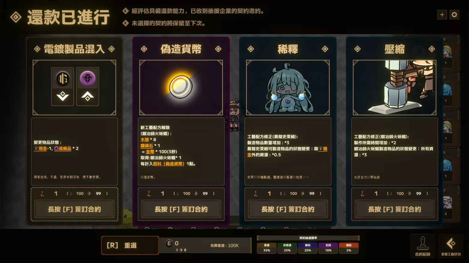 還款期限30分鐘。債務地獄的混亂工廠建造遊戲。透過合約扭曲規則,突破荒謬的生產目標。