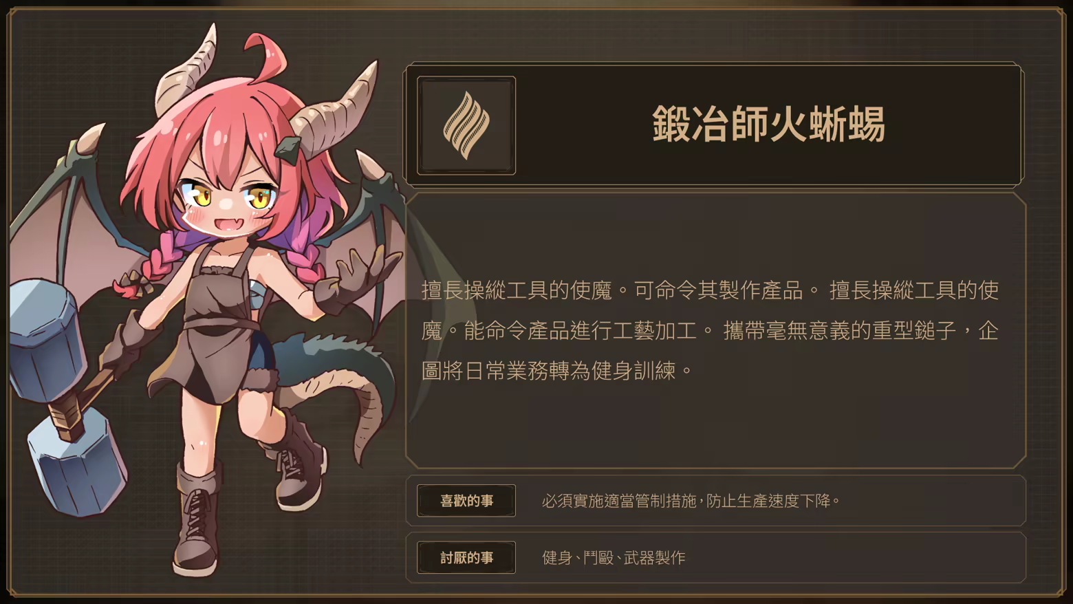 厭倦永生的高階惡魔們,如今正協助你經營工廠。儘管他們道德觀略顯匱乏,但此刻且睜一隻眼閉一隻眼吧。