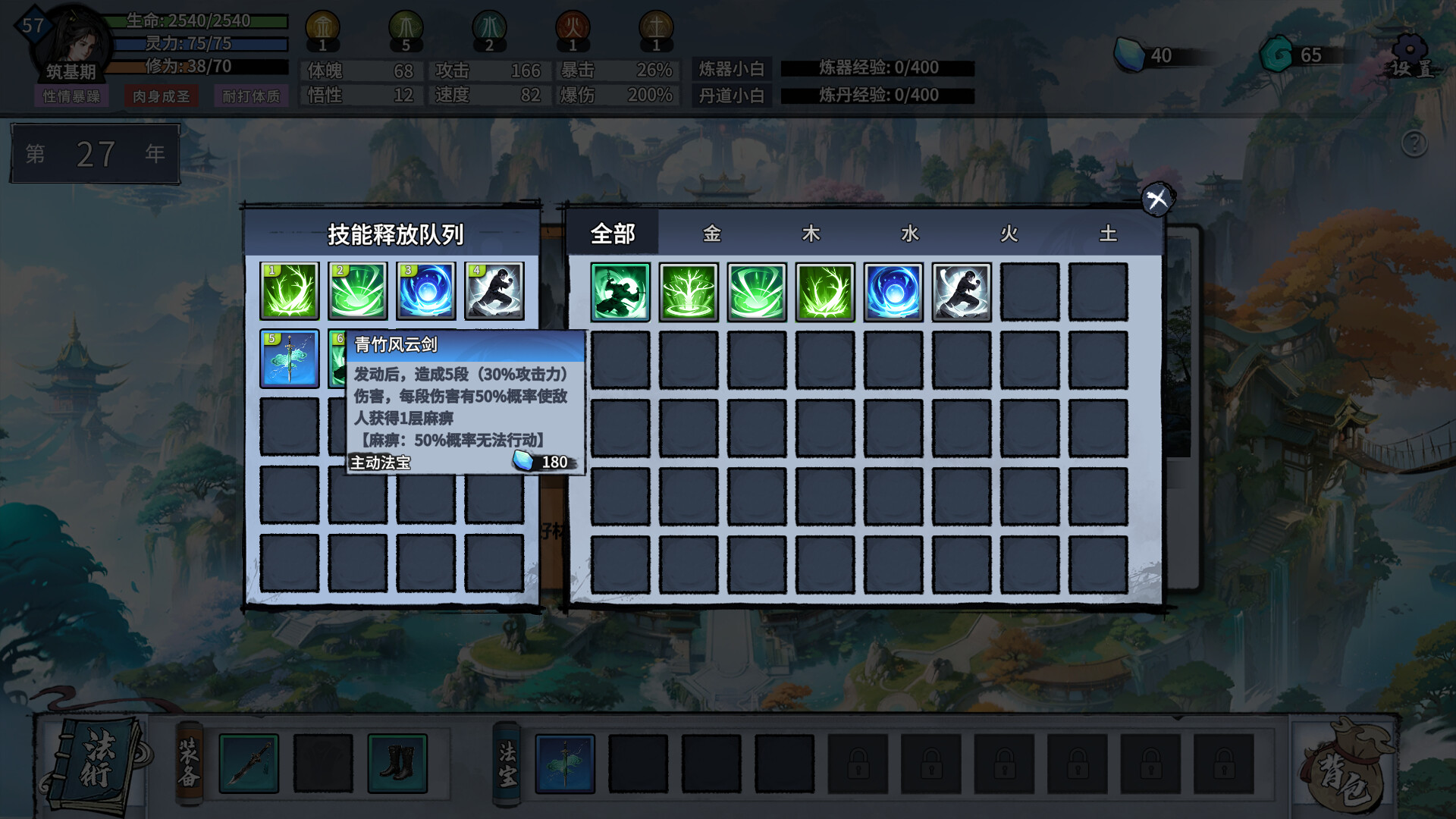 在修炼途中,我们提供了上百种五行属性的法术可以修习,你可以根据自己的成长方向,合理安排法术的上阵以及释放顺序,搭配各种仙丹和法器神通,以最强的姿态面对宿敌之战!
