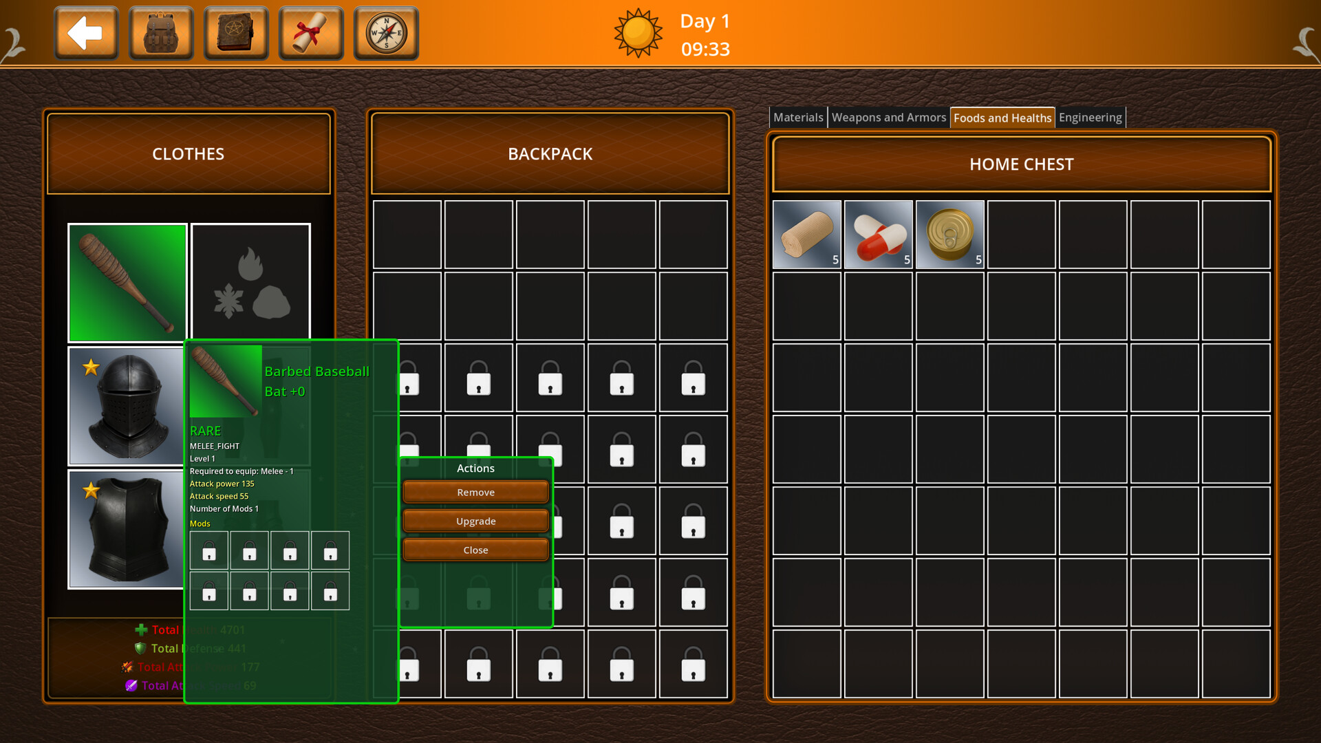 ⚒️ Ausrüstungs-Upgrades & Fähigkeiten – Verbessere deine Ausrüstung und verwalte die Fähigkeiten von dir und deinen Überlebenden.