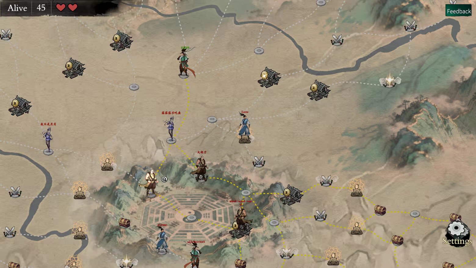 Backpack jianghu is a Wuxia theme, inventory management and battle royale game. Choose a starting sect, enter the world with dozens of other players, pick your path, battle and grow, and compete in the final showdown at Mount Hua's peak.