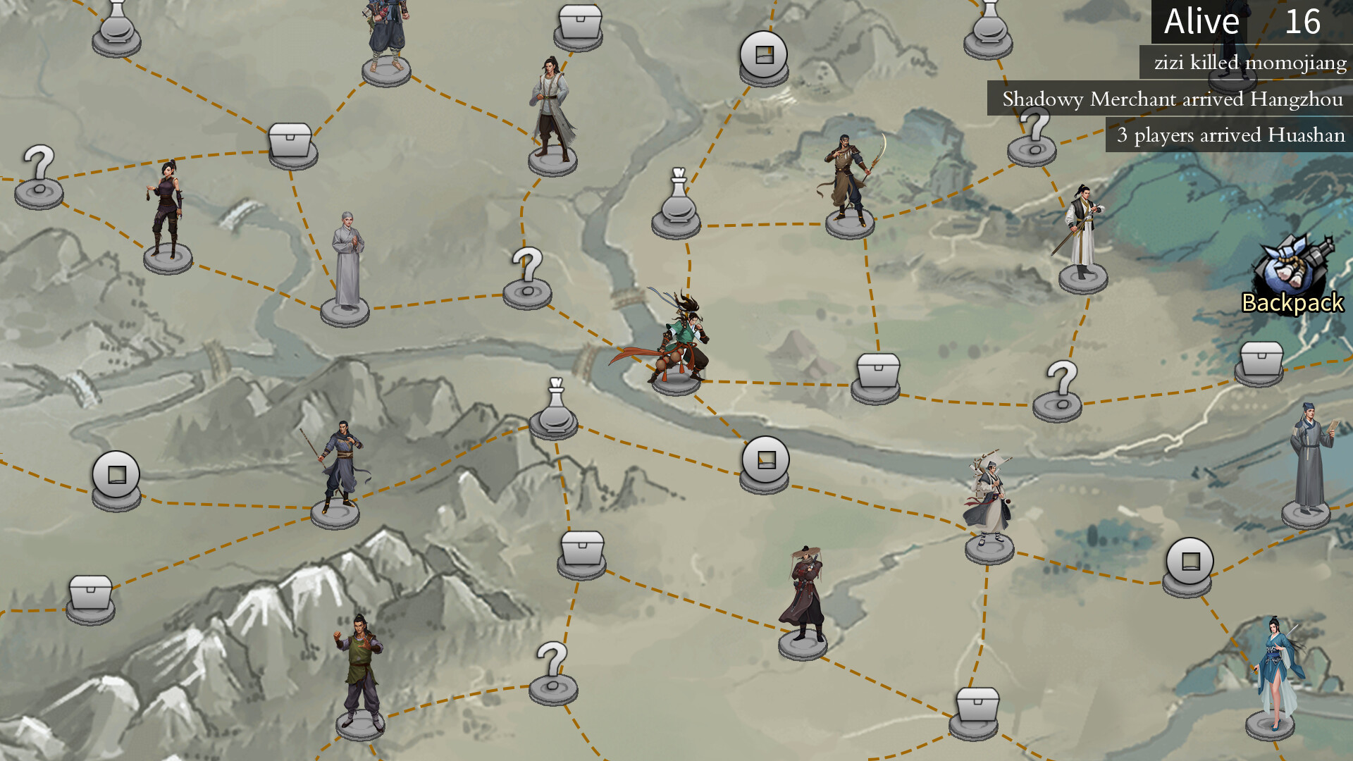Backpack jianghu is a inventory management and battle royale game. Choose a starting sect, enter the world with 99 others, pick your path, battle and grow, and compete in the final showdown at Mount Hua's peak.