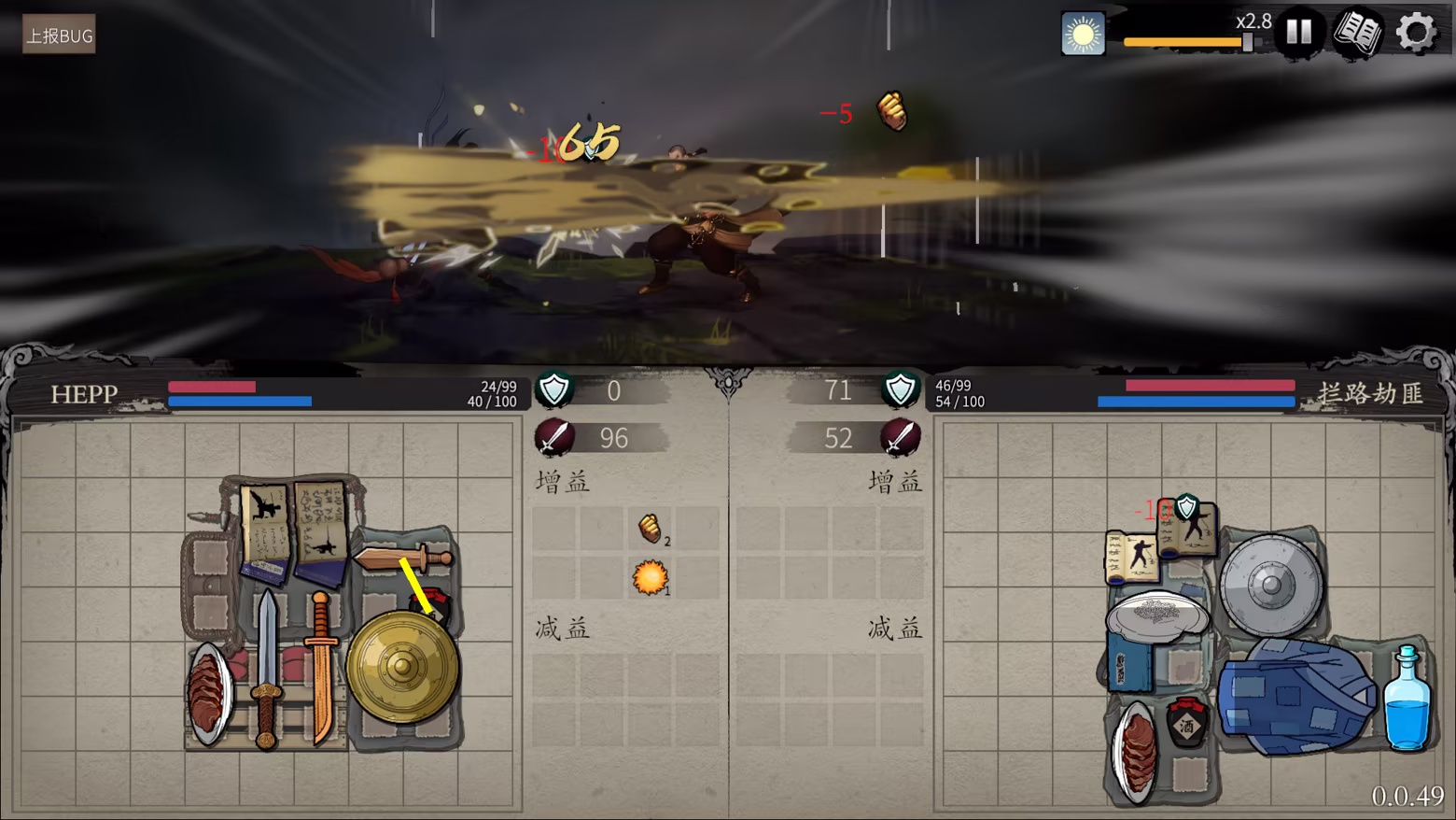 借鑒了《背包亂鬥》(Backpack battle)的基礎規則,並在此之上做了大量創新。可用內功強化招式,武器強化招式,低級武學合成高級武學,武術殘頁永久提升武學等級。