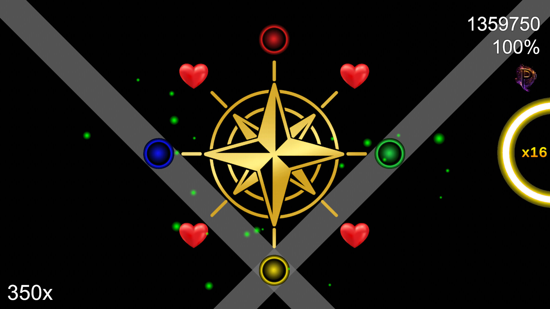 Experience a fresh take on rhythm gameplay with a unique compass mechanic. Notes fly outward from the center to the four directions (N, S, E, W), and you must strike them precisely in time with the beat.