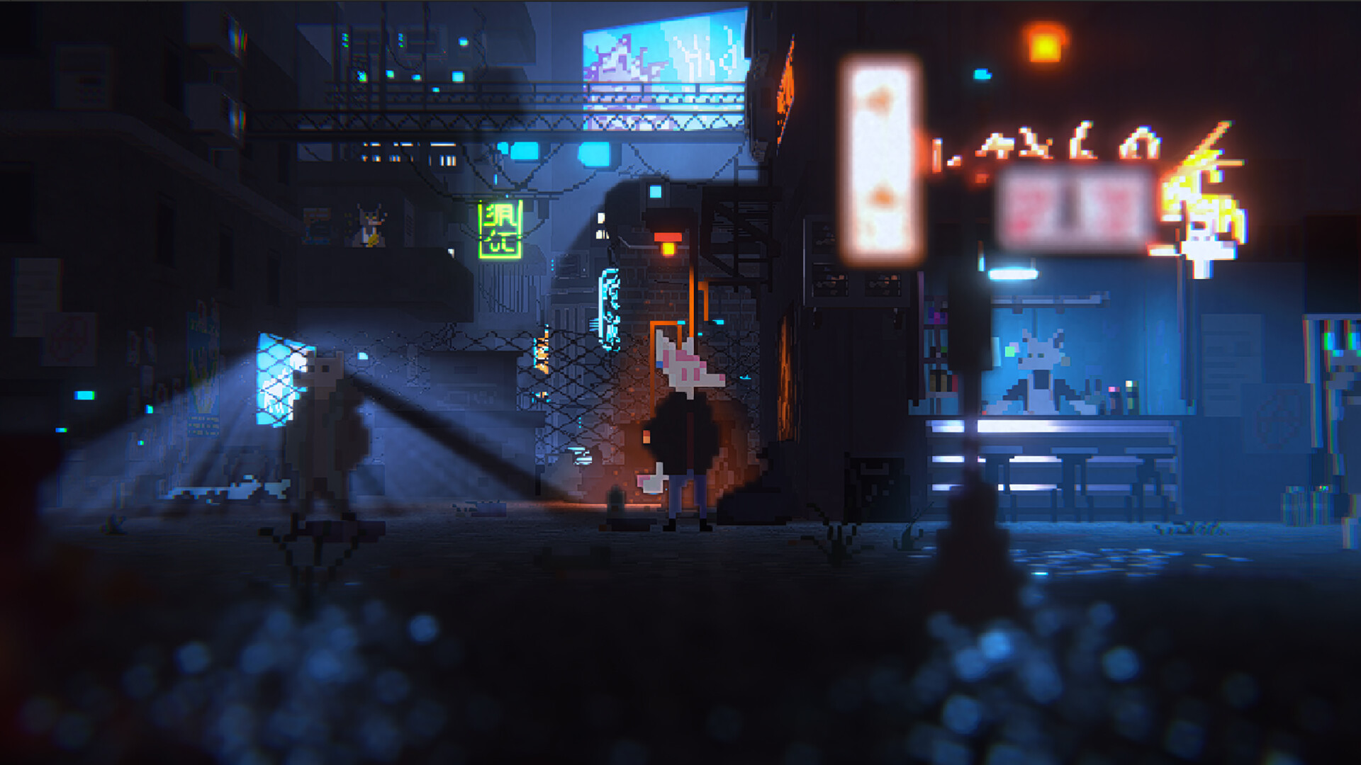 Night Lurker is a 3D side scroller mixed with 2D pixel art assets. We are using state-of-the-art graphic techniques such as volumetric lights and depth of field to give pixel art a new modern look. In the game, you're controlling an anthropomorphic fox in a dystopian city where crime became a normal activity. Your character ends up witnessing a murder and needs to evacuate the city in order to survive. The point of the game is to offer a small narrative experience and give a lot of variety of gameplay, from browsing on the computer to typing the code of a door. An experience between an adventure game and a point-and-click game.