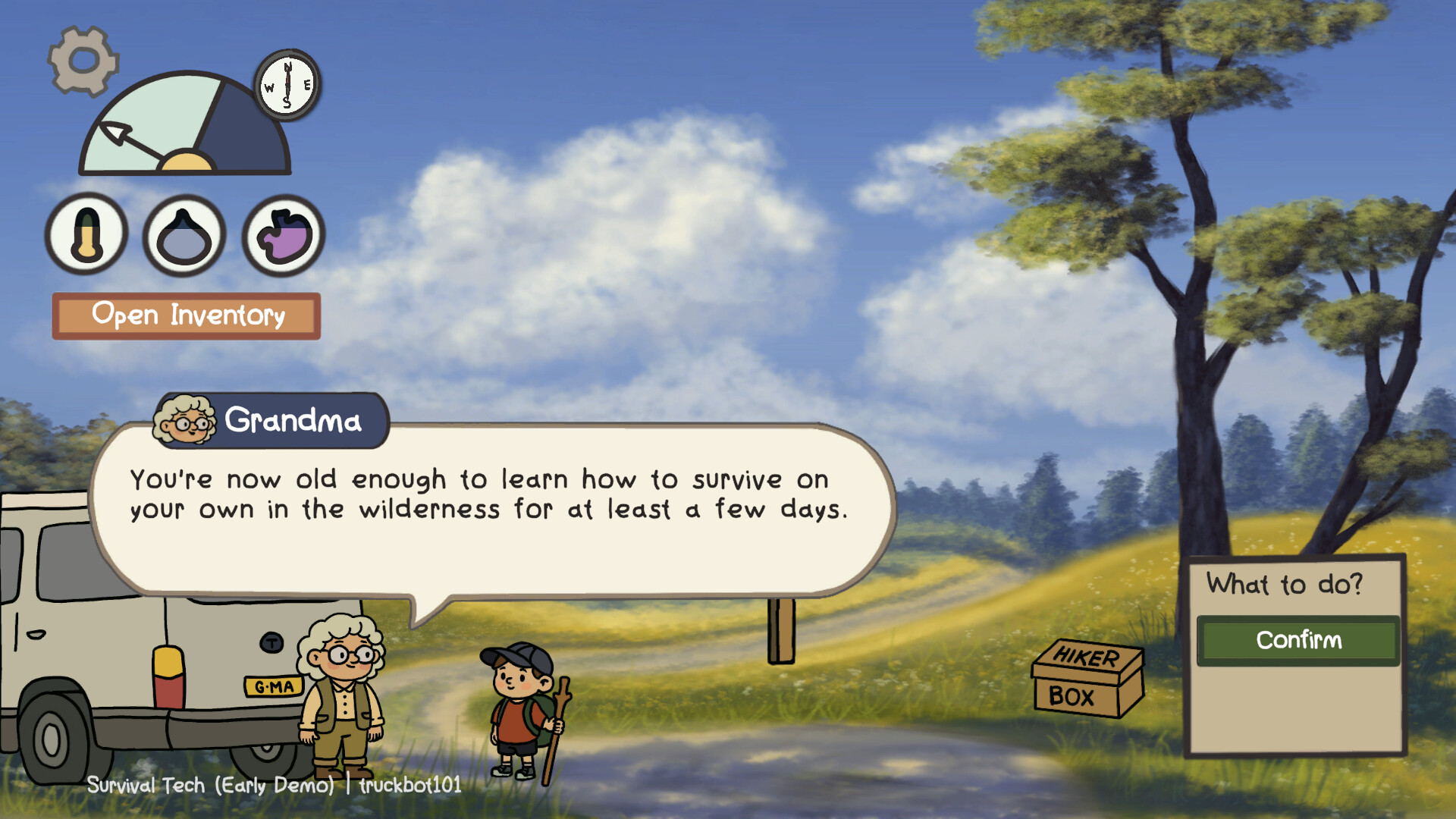 Travel through the wild, building fires, purifying water, and crafting shelter as you make your way to Grandma, your survival mentor.