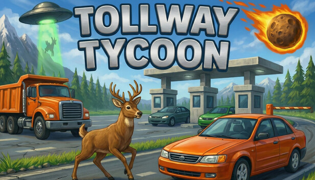 Tollway Tycoon is a chaotic management sim about running a cursed highway toll plaza, hiring staff, keeping traffic flowing, and juggling disasters from potholes and crashes to zombies, UFOs, and angry protesters.