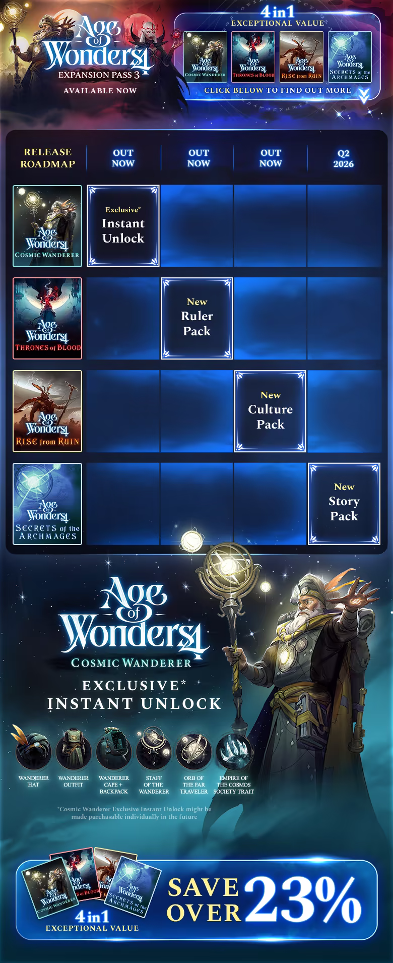 Play the strategy fantasy game that grows and changes each turn, as it continues to expand in new ways with another series of game-changing new content. Age of Wonders 4’s Expansion Pass 3 includes: