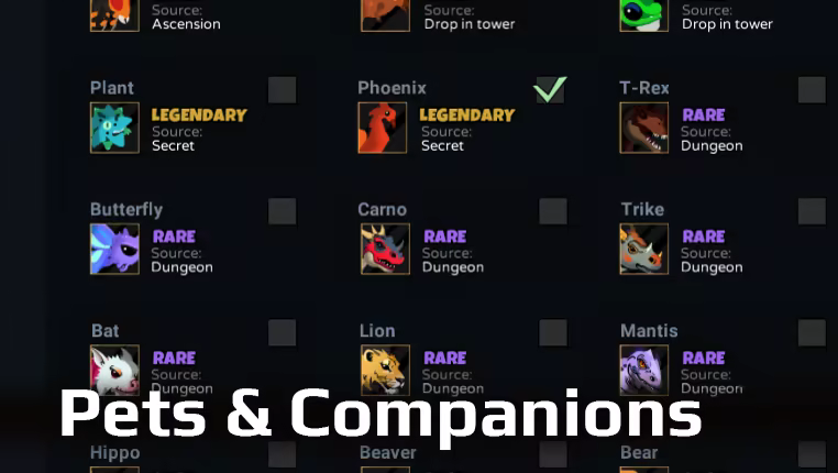 Find, collect and level up pets and companions with extra buffs and combat abilities.