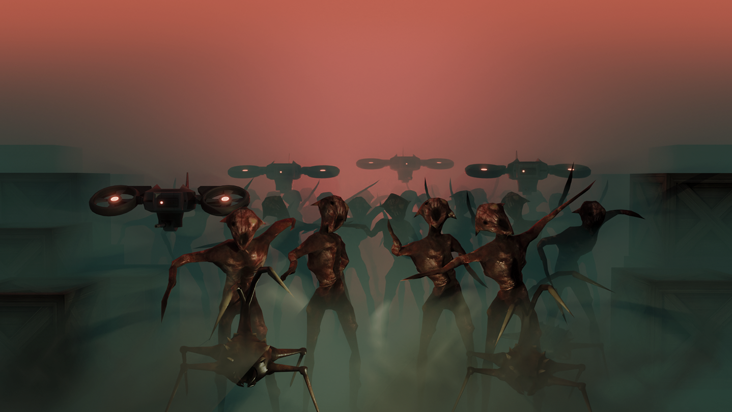 Live-D Corporation slowly took control of society, enforcing their power through a private army and secret human experiments. Captured and taken to a hidden underground complex, former soldier Marius was subjected to a serum meant to grant eternal life - instead he fell into a coma and awakened ten years later immune to the experiment, only to find the abandoned facility overrun by alien-like creatures created from failed test subjects that spread and destroyed the world.
