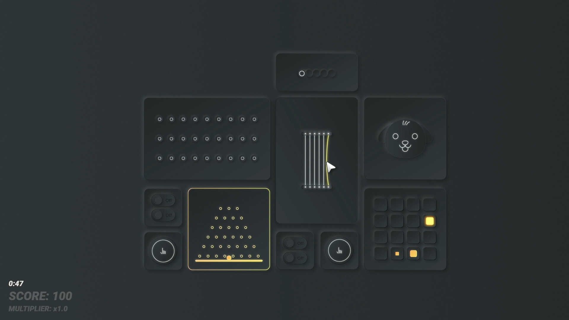 Operate a futuristic control hub filled with switches, sliders, and strange tasks.