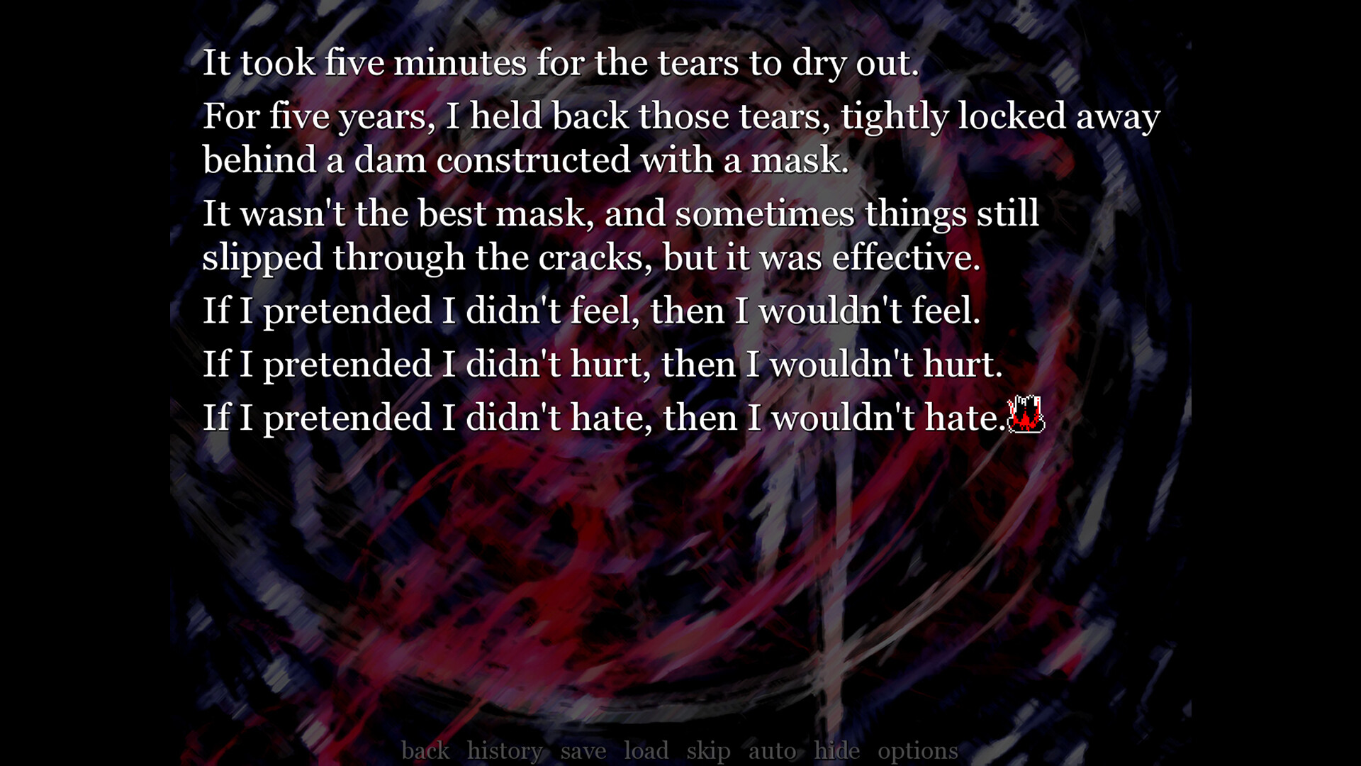 This game contains depictions of extreme bullying, religious and domestic abuse, cults, gore and torture, and disorienting and surreal scenes. Player discretion is advised.