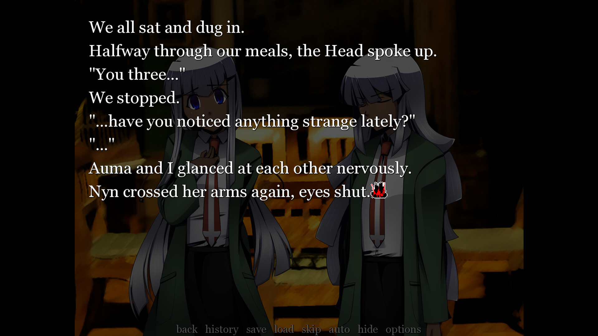 A yuri denpa tale about the cursed pariah of a rural cult, Mercy, and her fateful meeting with the Holy Maiden Auma. Bloody, bold, and bone-chilling, this visual novel explores the complexities of the cycle of abuse and the violence in playing by the rules.