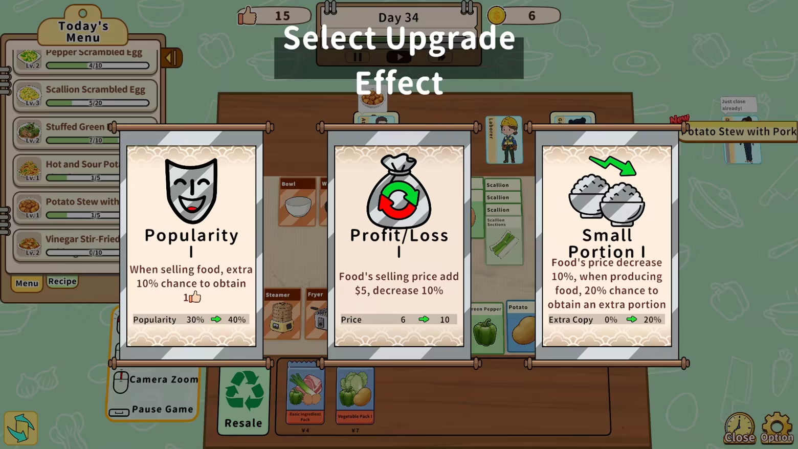 With just a simple drag and tap, transform a variety of ingredient cards into mouthwatering Chinese dishes. Dozens of classic recipes are waiting to be discovered, each designed to satisfy different customer tastes.