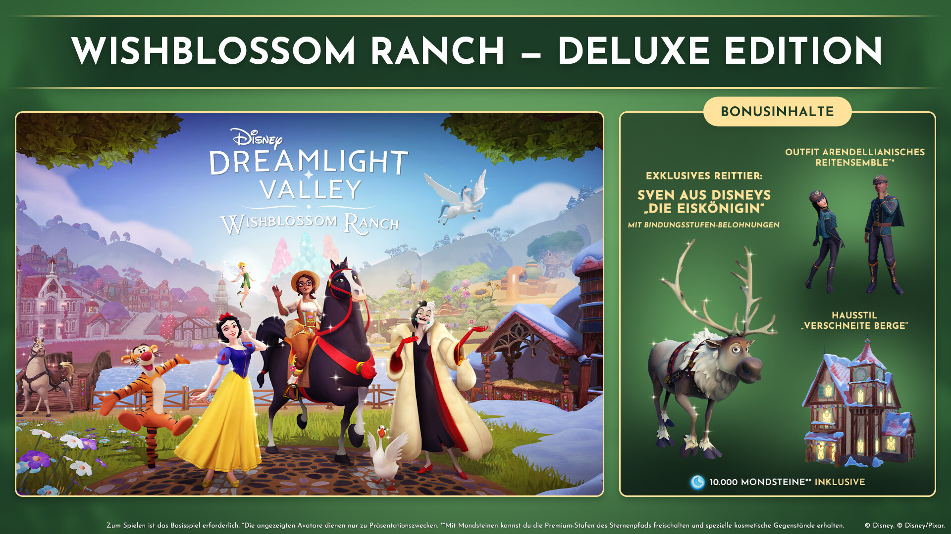 Disney Dreamlight Valley: Wishblossom Ranch – Deluxe Edition enthält 10.000 Mondsteine und die folgenden exklusiven digitalen Gegenstände: