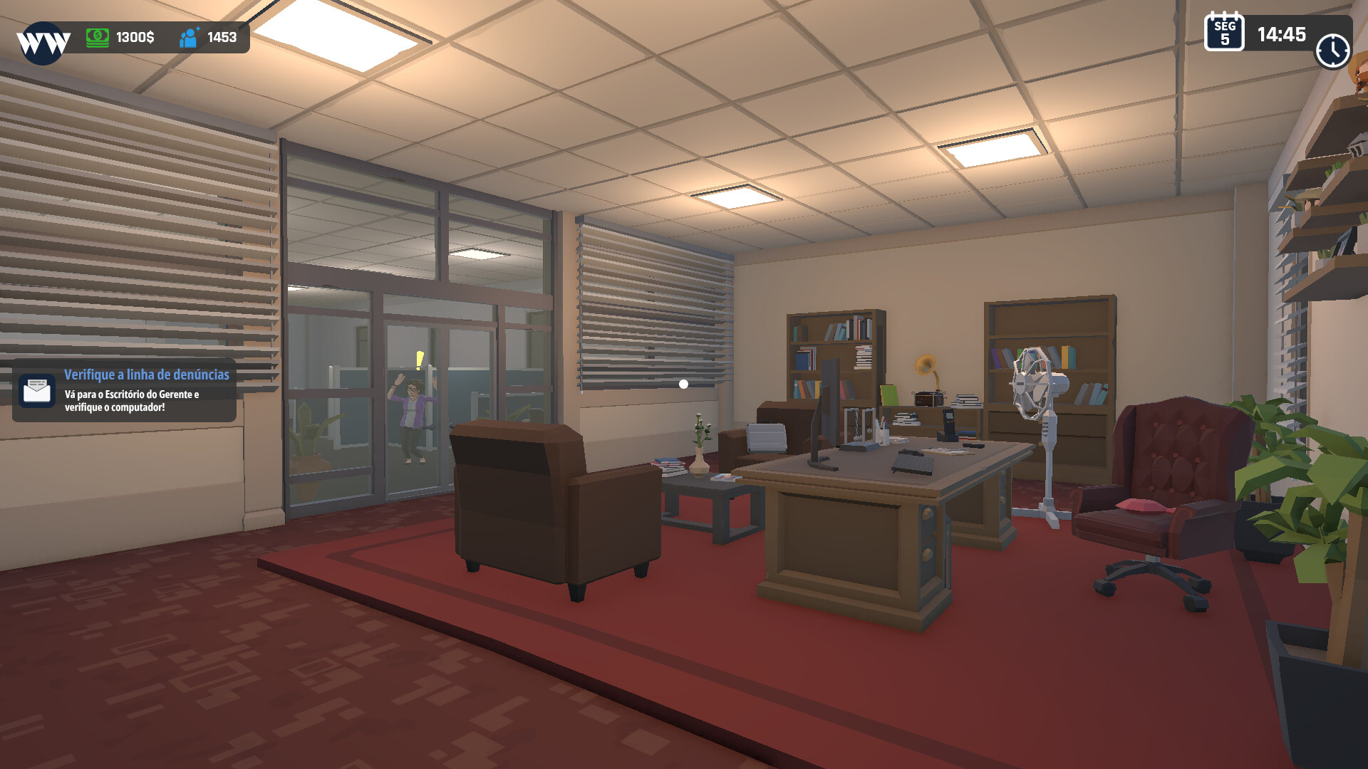 O controle da sua agência está sempre em suas mãos! A partir do computador principal no Escritório do Gerente, você pode acompanhar instantaneamente o progresso das tarefas de seus funcionários. Você pode facilmente ver quem está em sua mesa e quem está relaxando. Quando você vir um funcionário preguiçoso, aja imediatamente. Encontre o funcionário que está procrastinando no escritório e dê a ele um pequeno "Toque de Motivação". Às vezes, um pequeno lembrete é a maneira mais rápida de aumentar a produtividade. Lembre-se, um escritório organizado significa mais notícias!