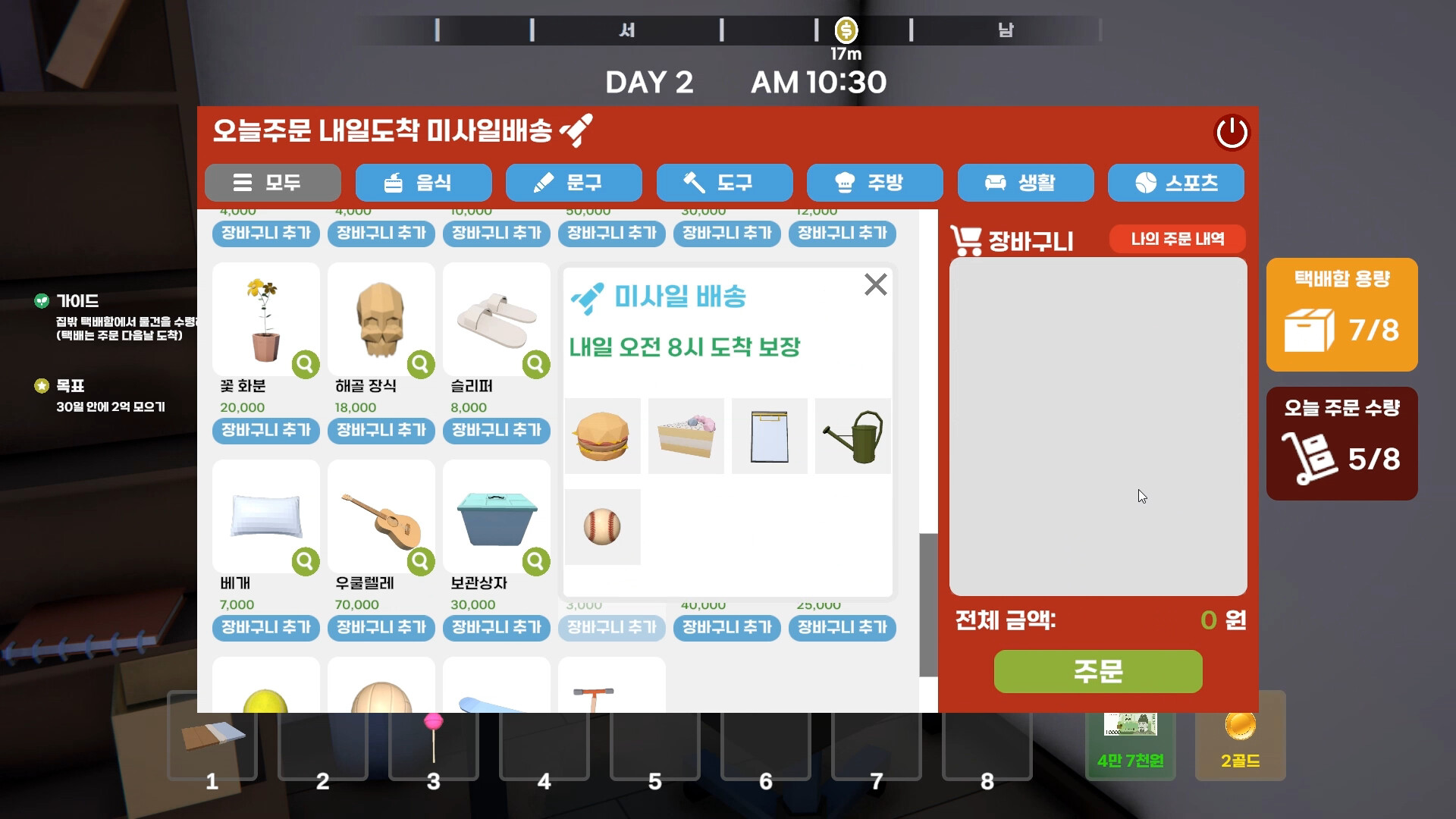 • A 30-Day Time Limit: You have exactly 30 days to play. Carefully plan your inventory for the next day's sales and execute an efficient trading strategy. You can only advance to the next day by sleeping, which also lets you receive your ordered packages.