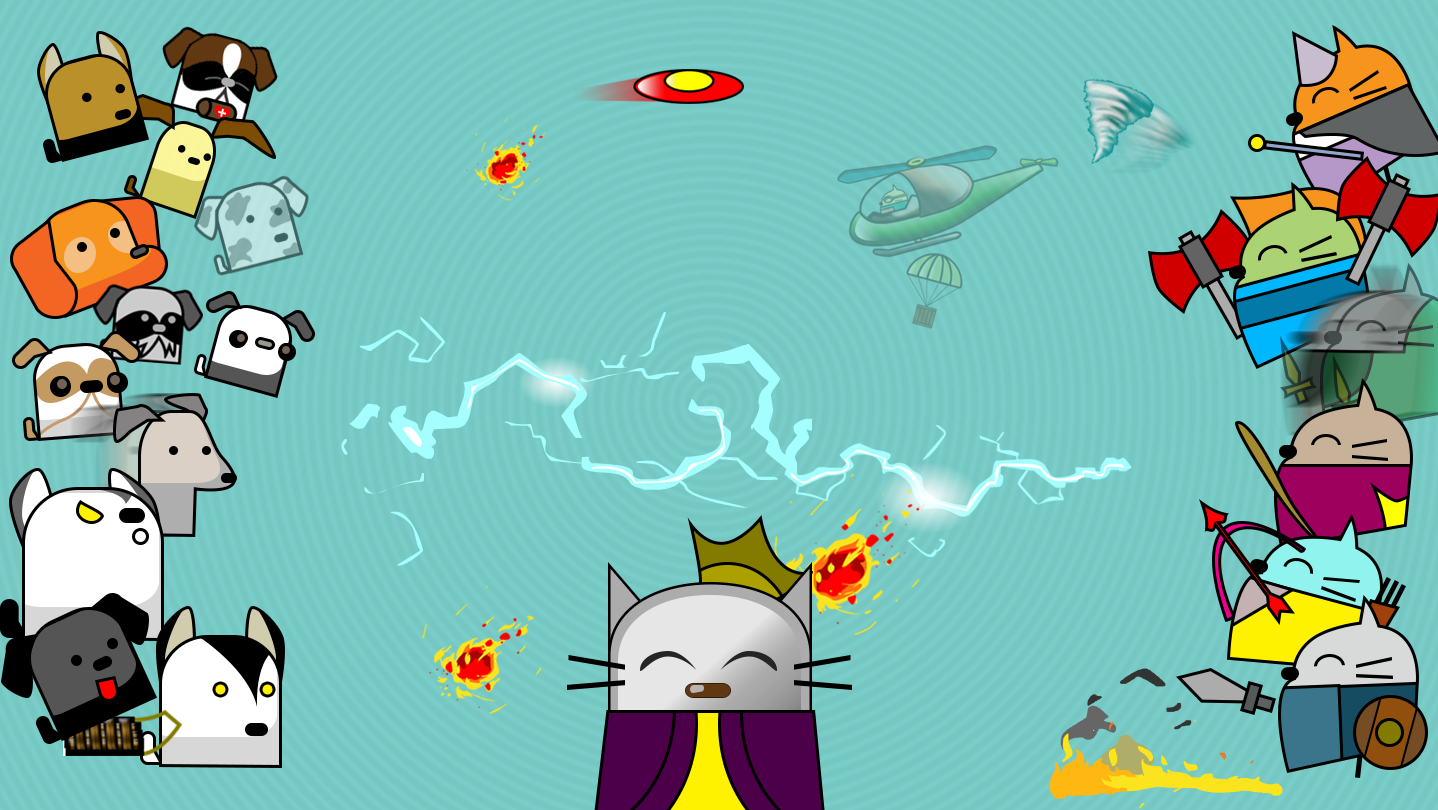 Help Kingkat to defend the castle while waiting for his owner to come back for him (or so he thinks). Hire warriors, archers, rogues, berserkers, mages, or priests and upgrade their skills to aid you in battle against wave after wave of angry dogs.
