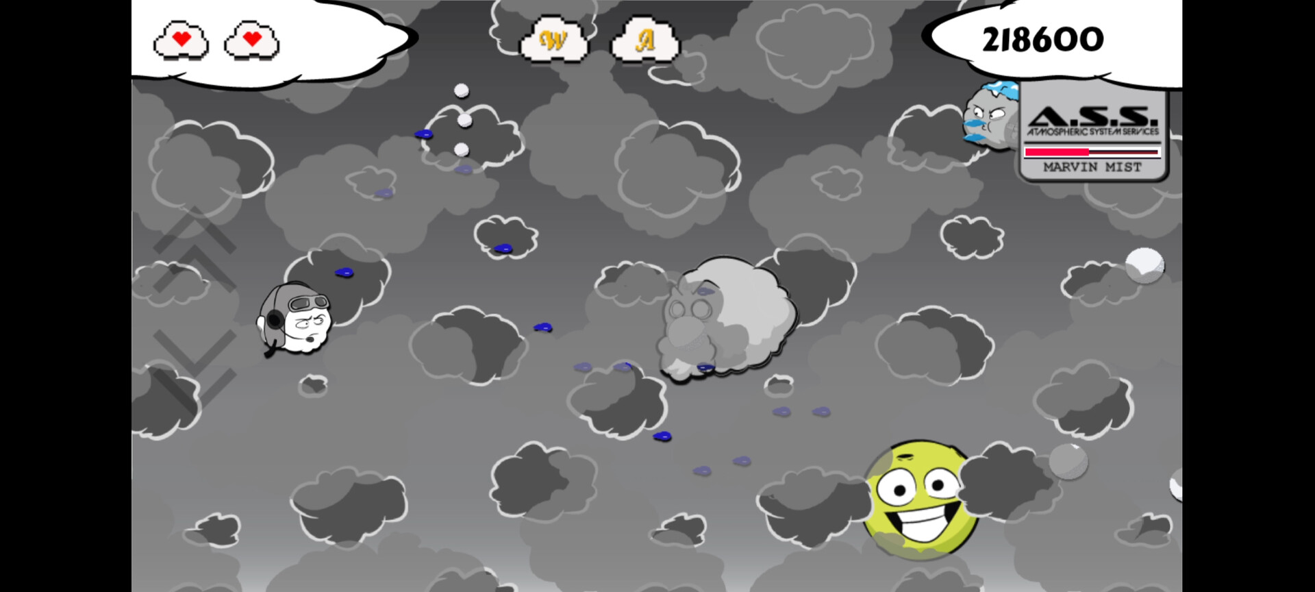 Operation: A.S.S. Takedown is a cozy 2D side scrolling roguelike cute em up. You take on the role of an intern at Weather & Air Productions(WAP) as you attempt to take down weather balloons set up by rival company Atmospheric System Services(ASS).