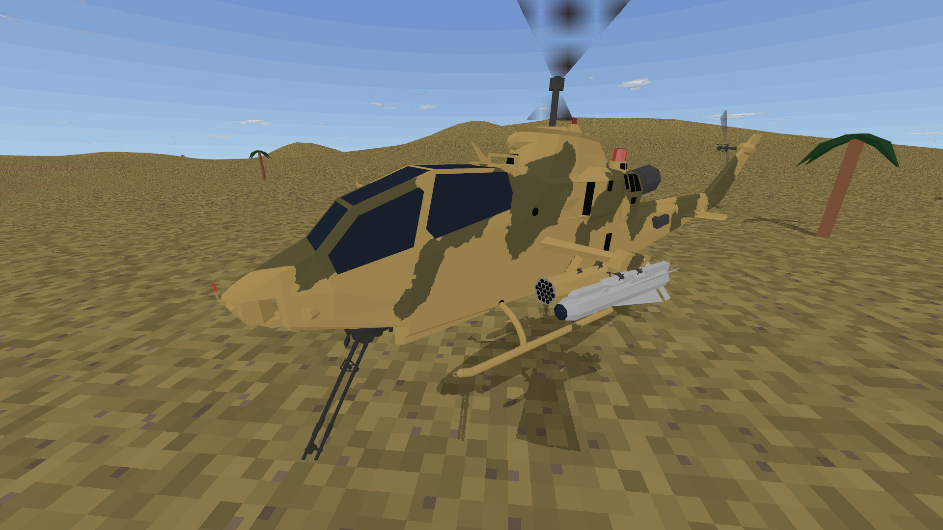 • 2 completely new flyable helicopters, AH-1F Cobra attack helicopter and UH-1H Huey II. Cobra delivers a lot more firepower than defender with 4 armament pylons and helmet-tracked M197 20mm cannon, and Huey will be a clunky, but steady assault helicopter carrying troops and firing rockets or guns.