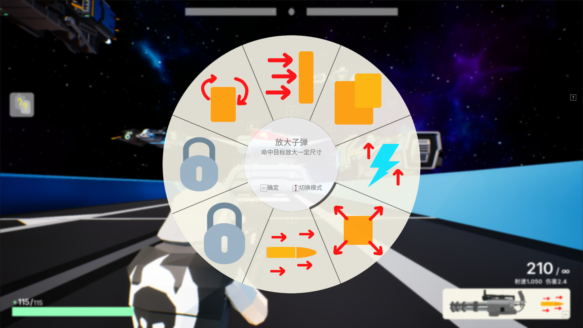 The demo provides 6 types of attribute bullets: Health, Size, Voltage, Copy-Paste, Position, and Rotation bullets. Modify any object on the map (including enemies and yourself) to create tactical advantages.