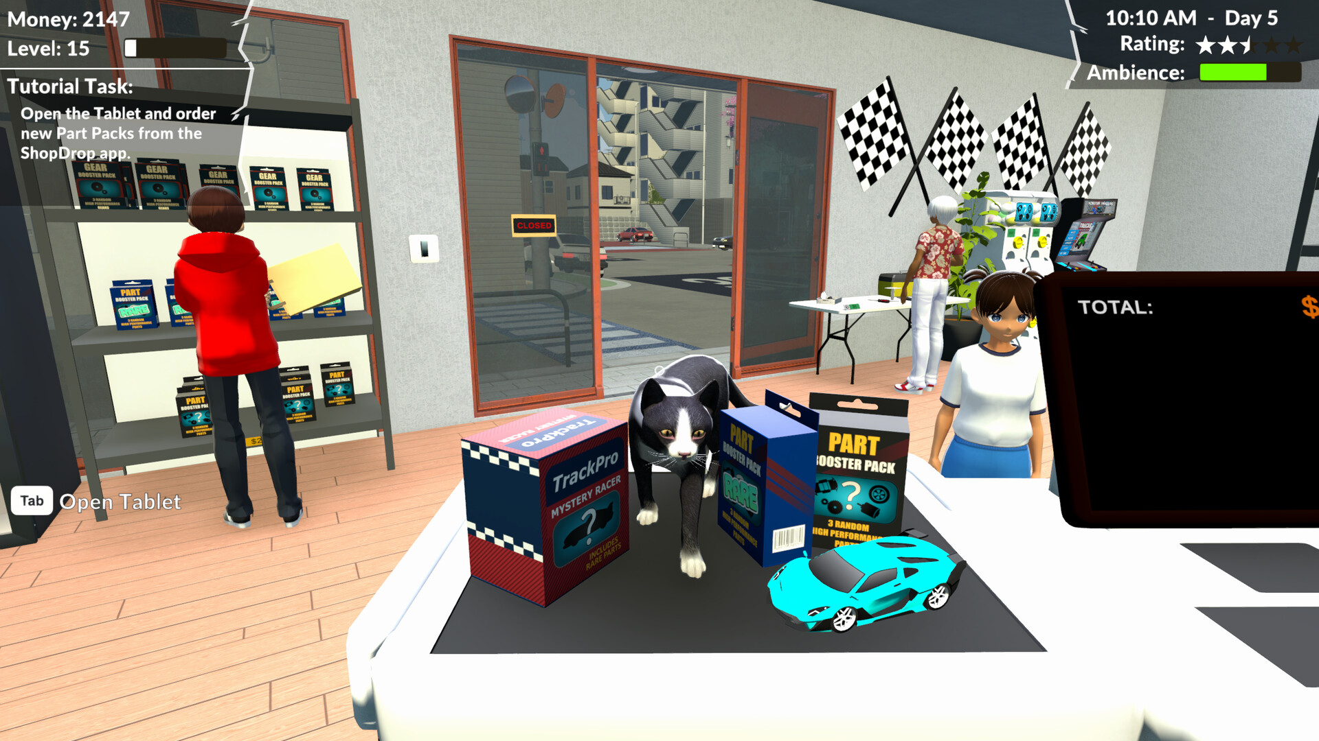 Pocket Racer Shop Sim is a cozy shop simulator with a racing twist. Run your dream shop, unlock booster packs filled with parts, and build pocket-sized machines to put on the track.