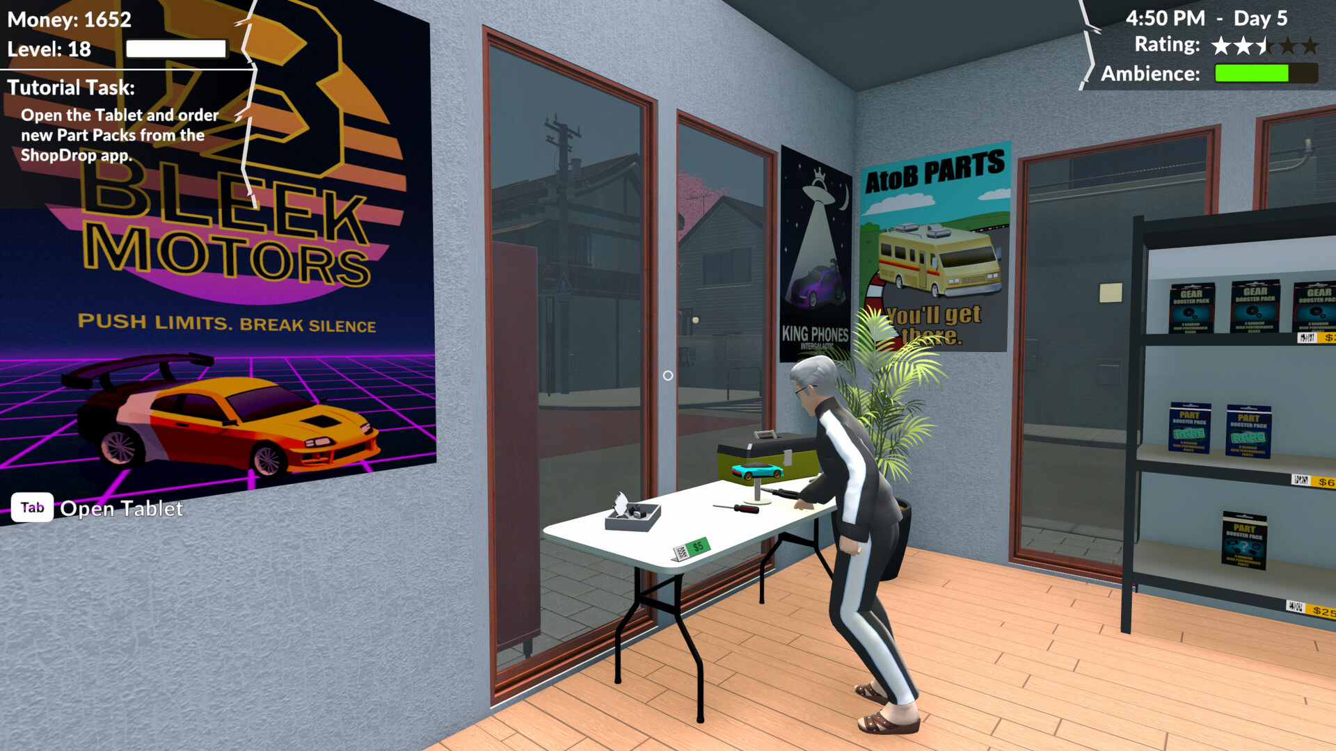 Put your builds to the test on your shop’s track and challenge customers or friends to races. As your shop grows, you’ll unlock new tracks to race on, host events, and refine your setups around increasingly complex layouts. Share the excitement by exploring or racing on community-made tracks with planned Steam Workshop support.