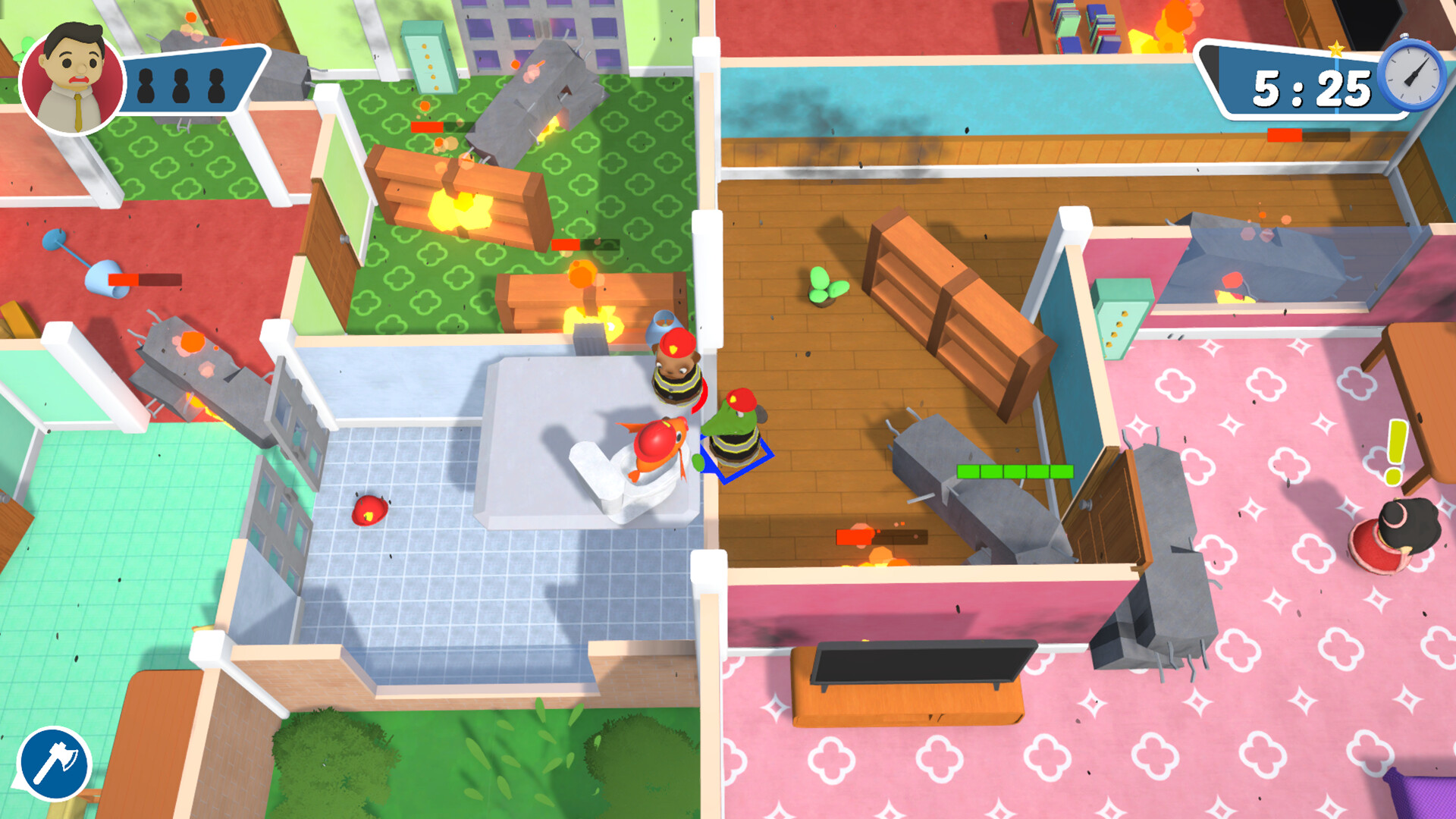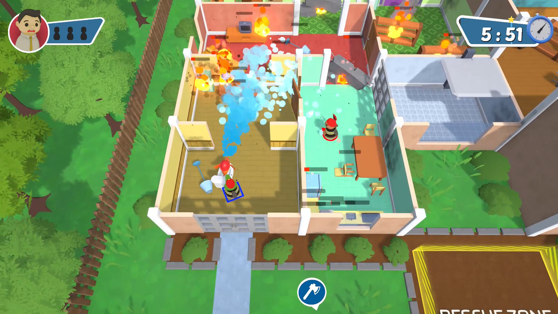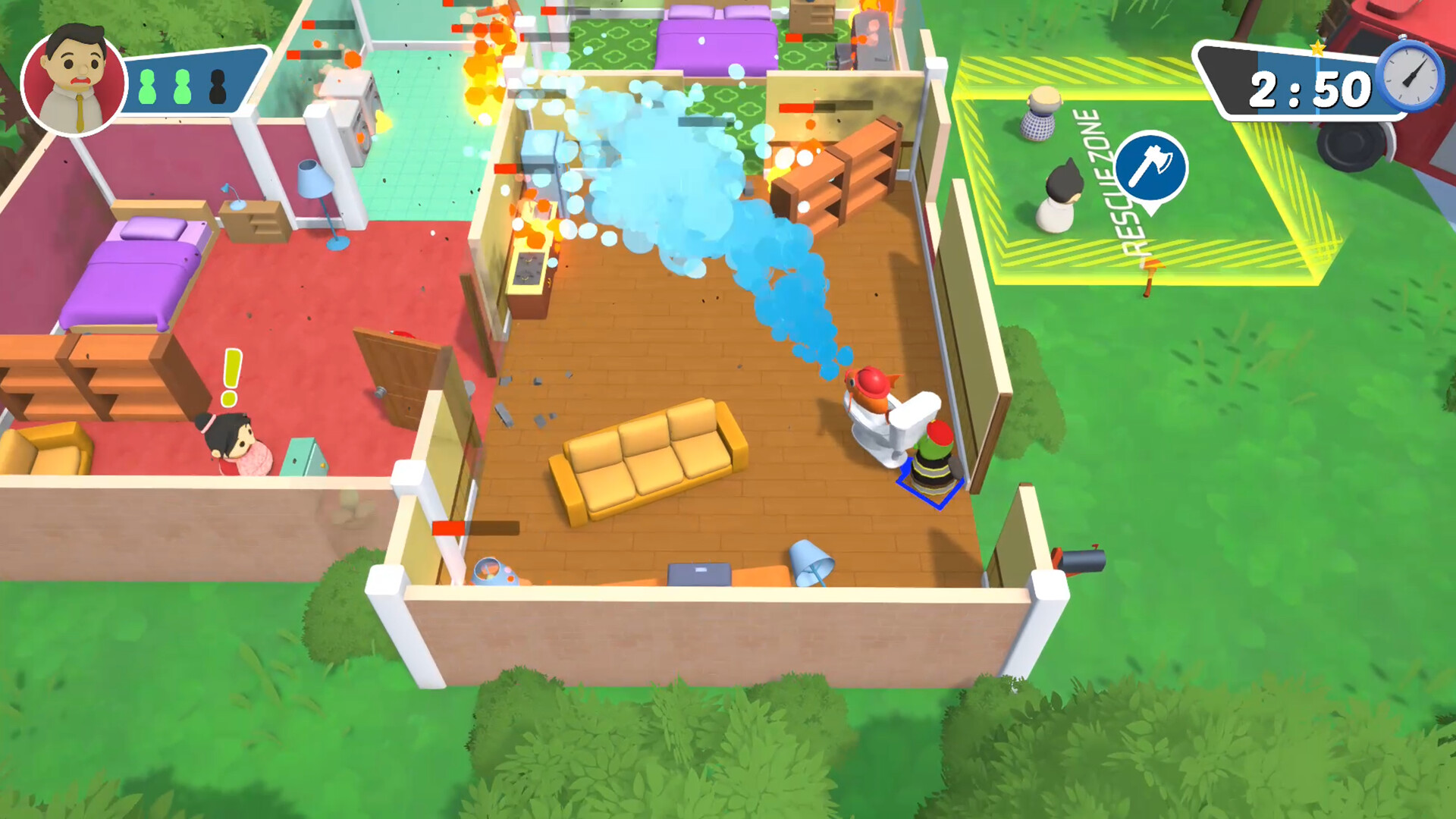 FiresOut! is a chaotic couch co-op firefighting game for up to four players where teamwork makes the dream work... or total disaster! You and your friends dive right into the burning neighborhood working together to extinguish ever spreading flames, rescue trapped victims, and overcome unpredictable environmental hazards all while dodging fiery projectiles from the fire monsters. Every mission pushes the team to communicate, strategize, and adapt quickly with chaos at every corner, whereby great teamwork can lead to a heroic save or a total disaster.