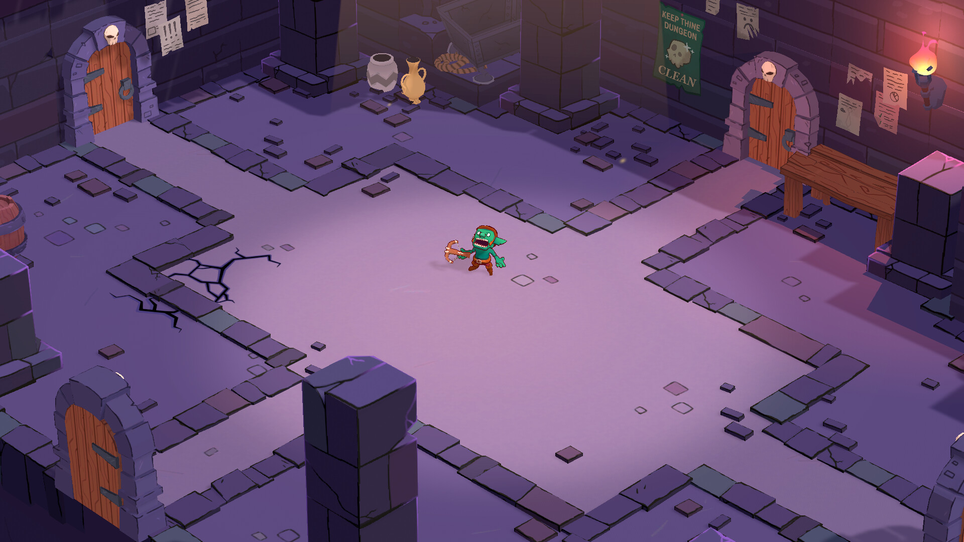 Powerup your underling with wacky magical items, and discover fun synergies like homing fire arrows, health leeching spin shots, and more!