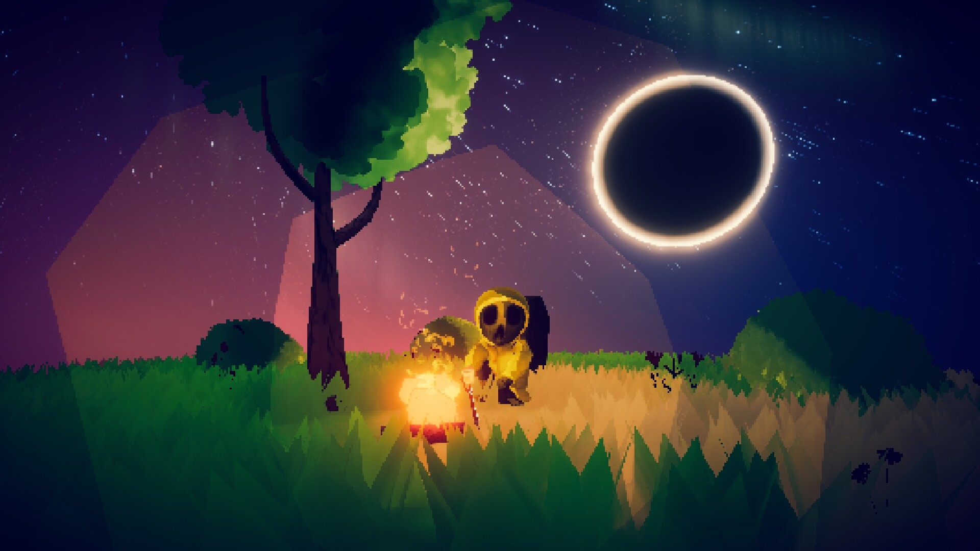 Despite the cozy look of The Hollows, it does contain some mature content. Most of it maintains the retro cozy stylized look, but can still be depicted as quite graphic despite the Cartoon nature. E.G. corpses, death animations, black blood, mild human gore, all the fun stuff :)))