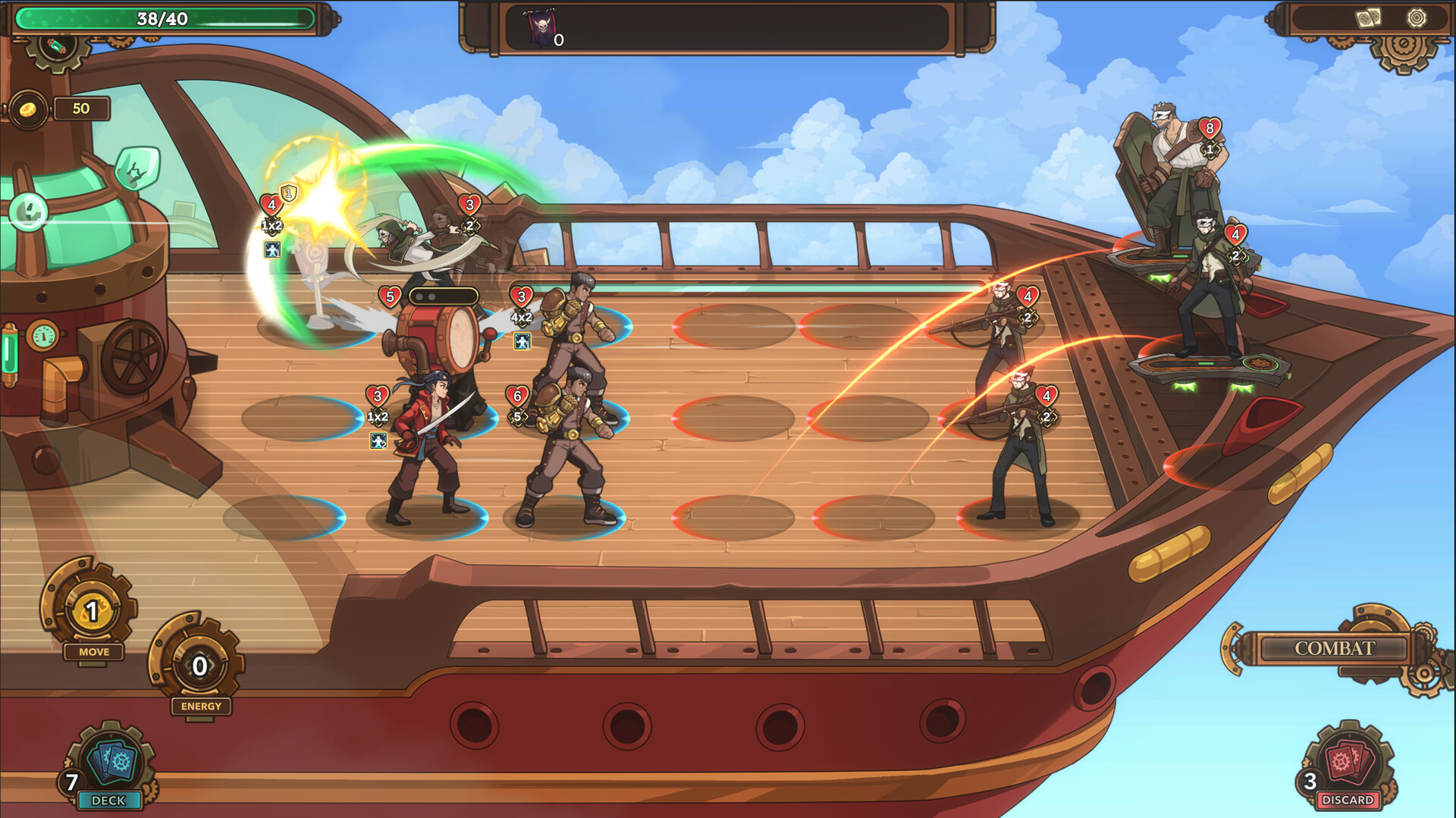 Partez à la conquête des cieux dans ce roguelike tactique de construction de decks ! Dans Rogue Skies, rassemblez votre équipage, chargez les canons et défendez votre aéronef contre les raids de pirates célestes en les pulvérisant en plein vol !