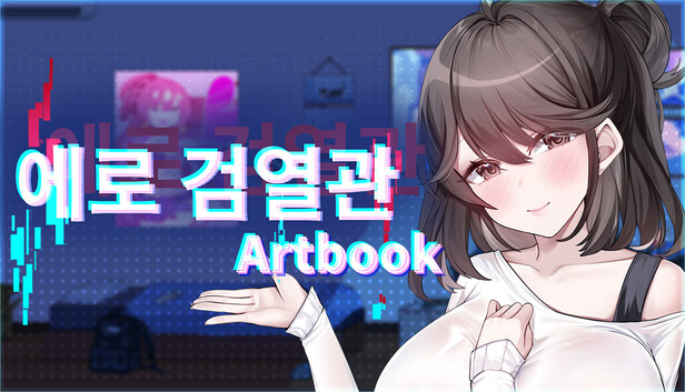 「에로 검열관」 미술 설정집 41p: 캐릭터, CG 이미지, 도트 그림, 게임 화면.